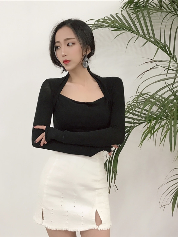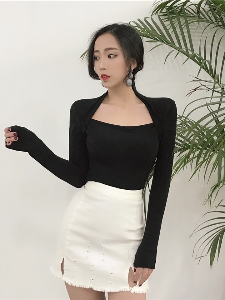 气质方领上衣,新颖的样式,体现青春潮范的同时更美观,穿着方便又时髦;简单随意。