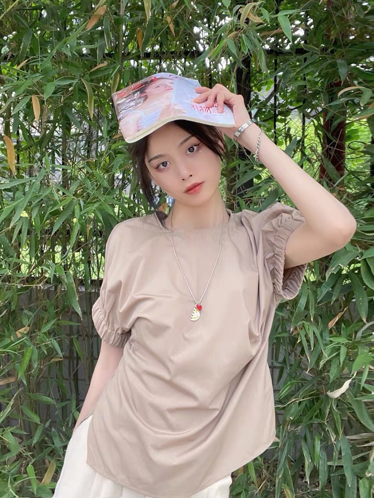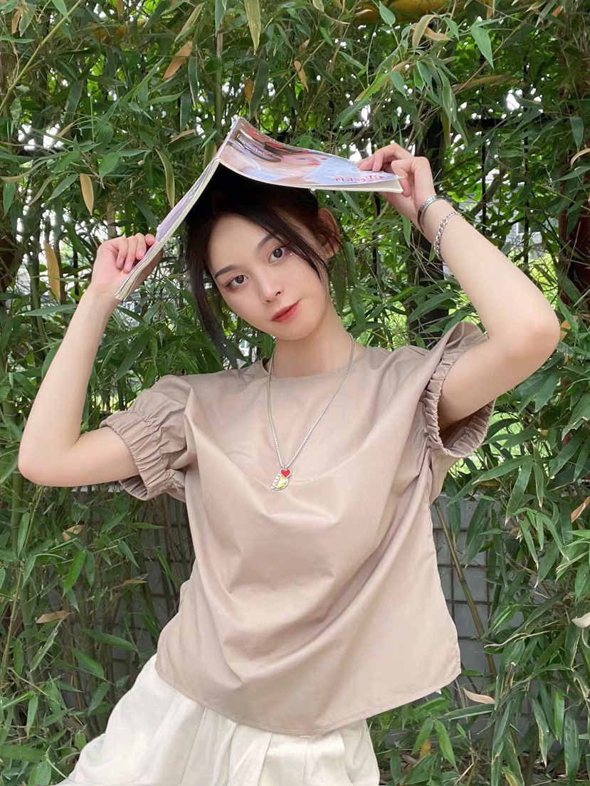 我真的太喜欢卡其色了,这件衣服的颜色真的漂亮,穿着不显黑,非常衬肤色,它还有圆领和泡泡袖的设计,甜美又元气满满。