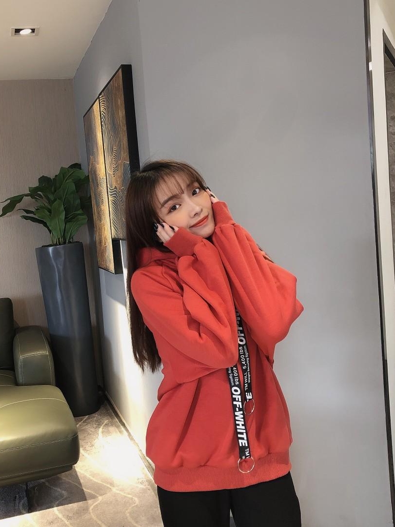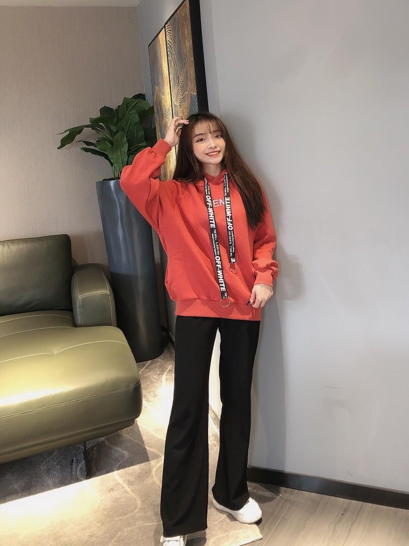 简单的卫衣款,搭配黑色小脚裤,时尚充满休闲范。