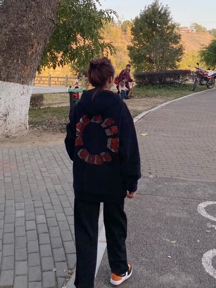 宽松休闲的经典版型,印花点缀充满复古味道,连帽加绒充分保证了保暖性,冬天也可以任性地穿它出街。