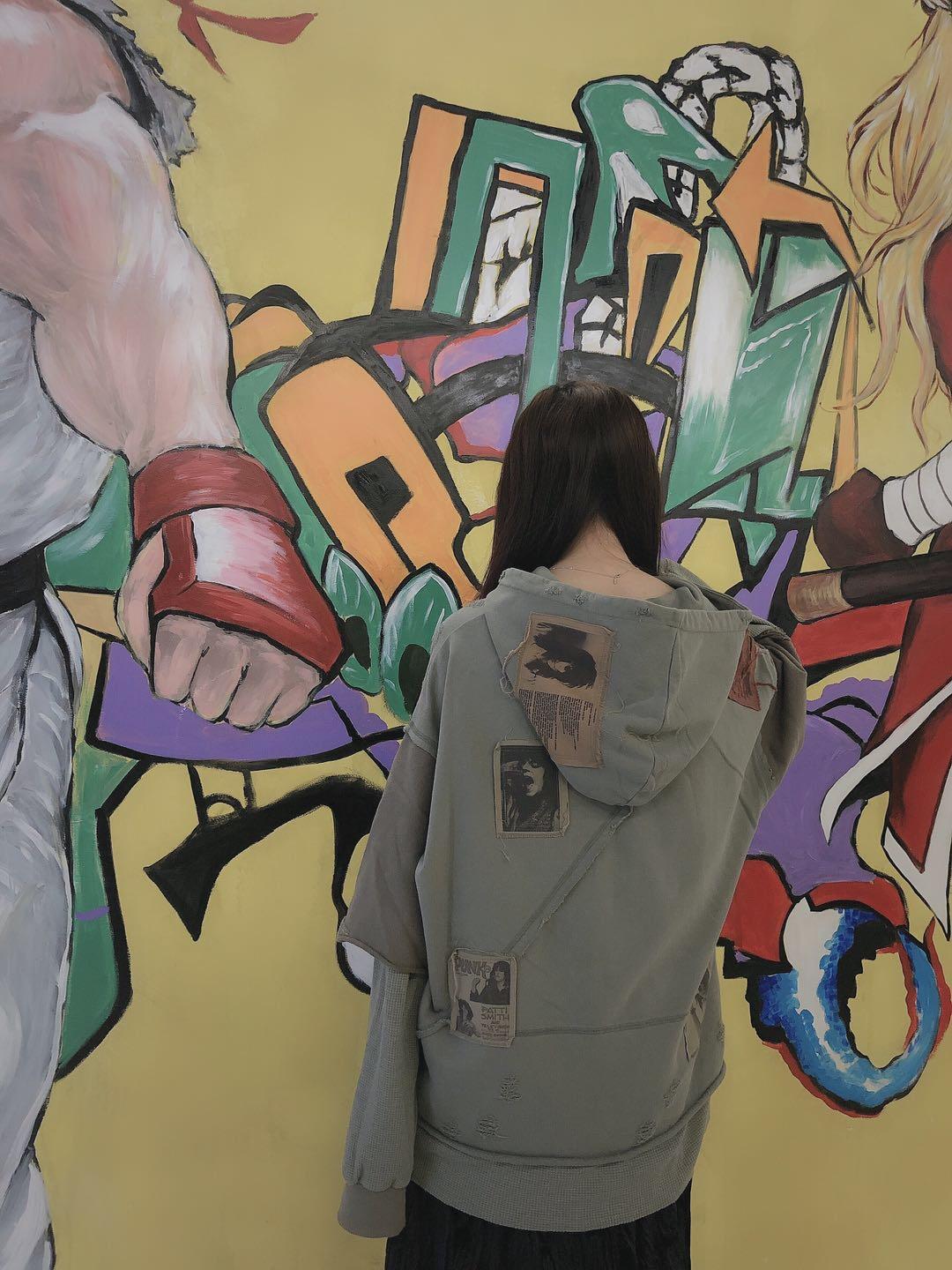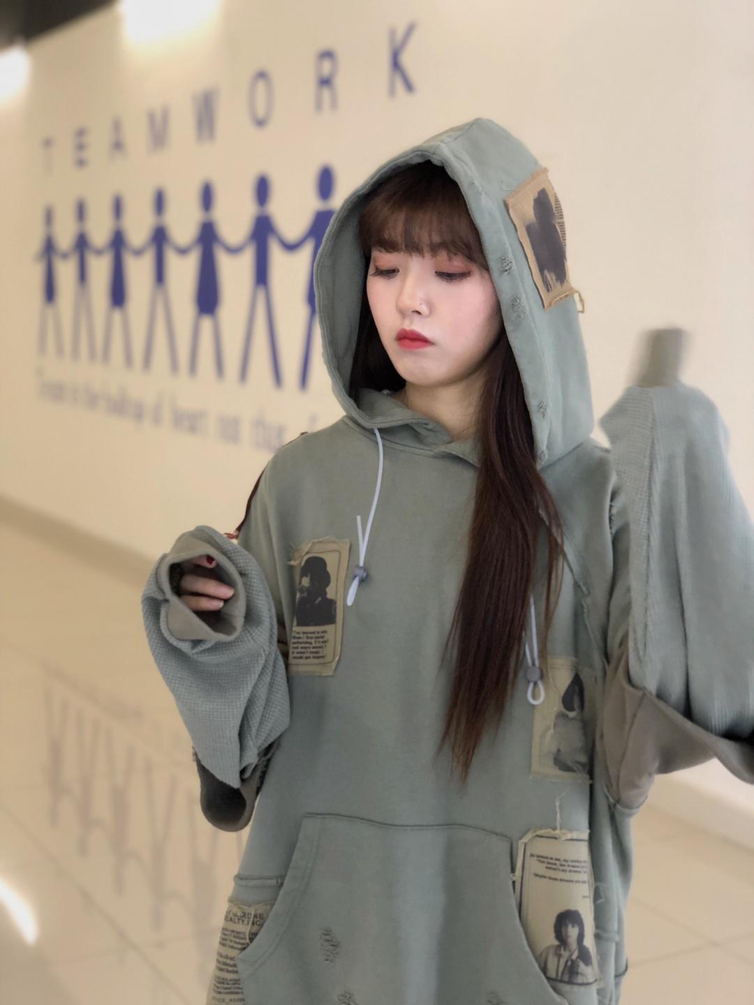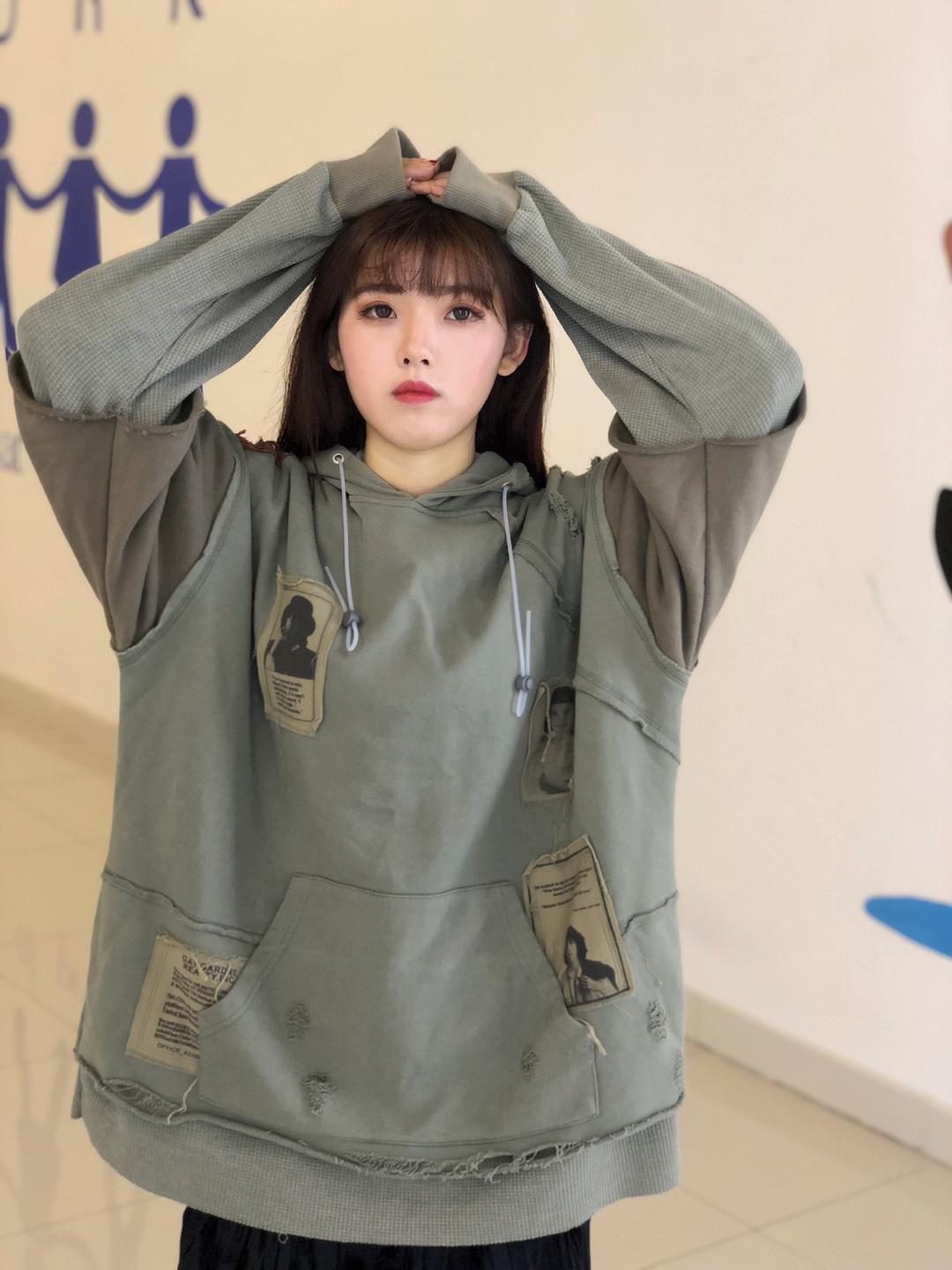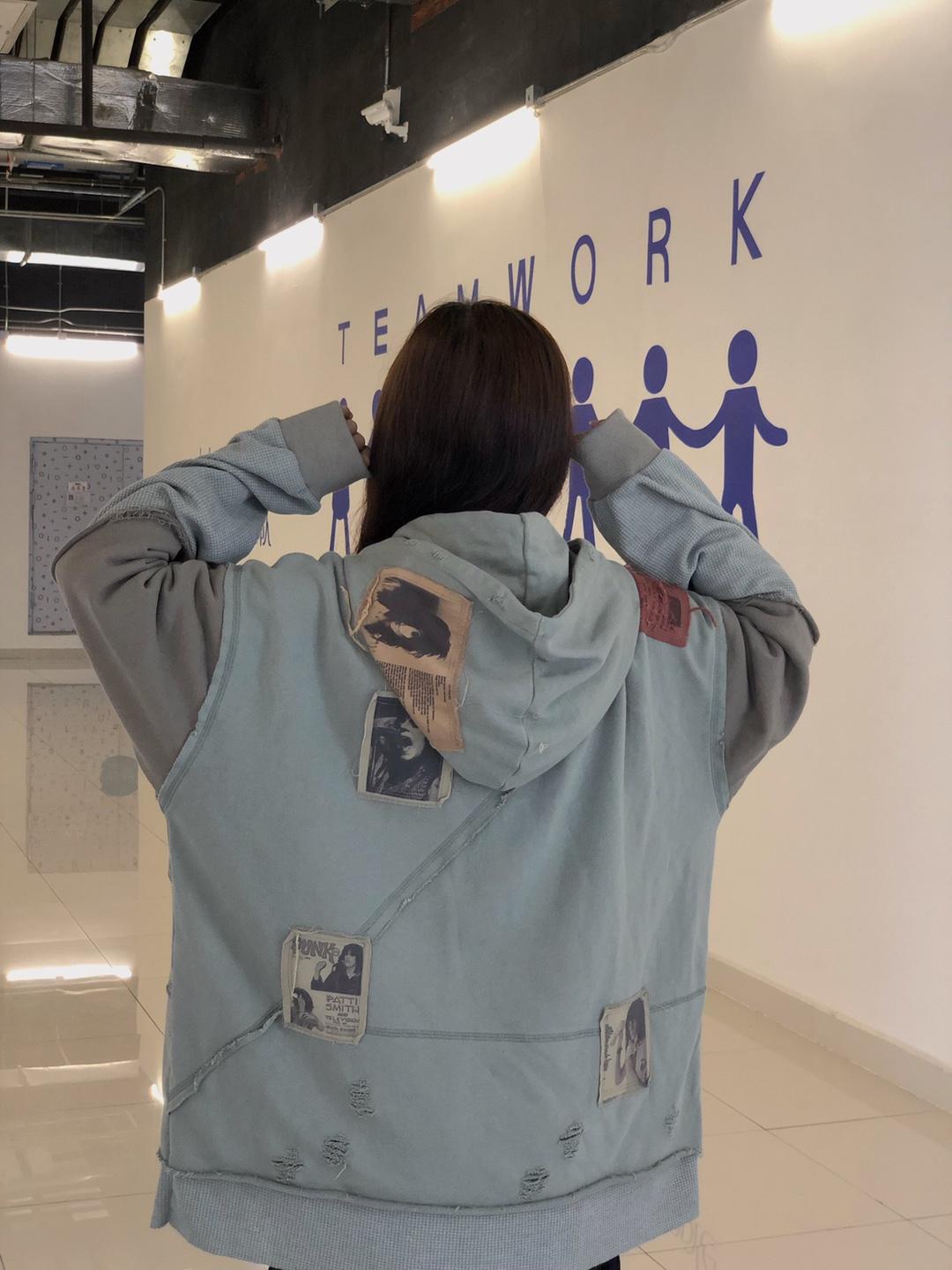 毛圈的设计,时尚感十足,宽松版型,穿着舒适自在,假两件拼接,层次感十足。