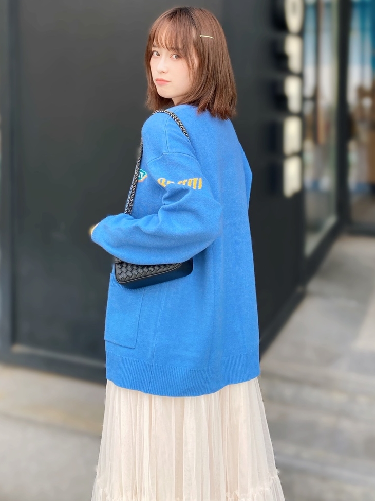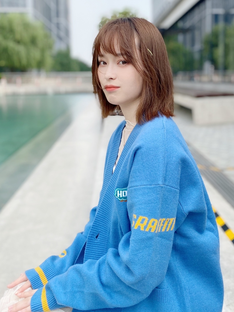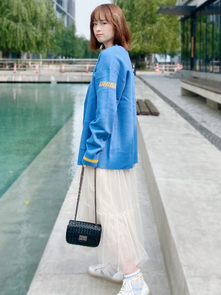 蓝色毛衣太适合女孩子了吧!超级温柔呀,材质摸起来舒服,穿起来舒适!