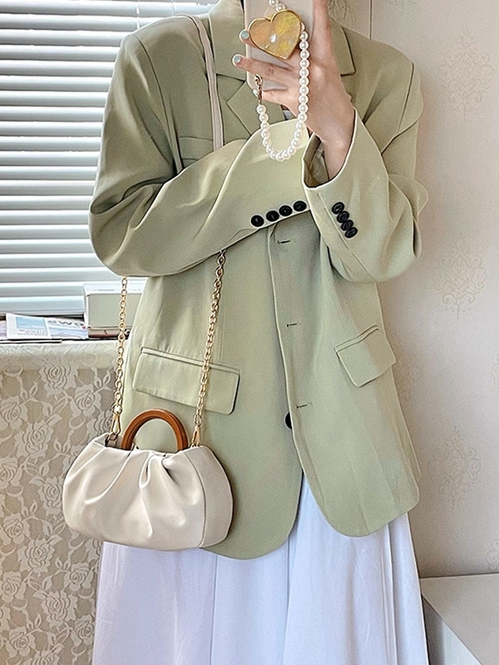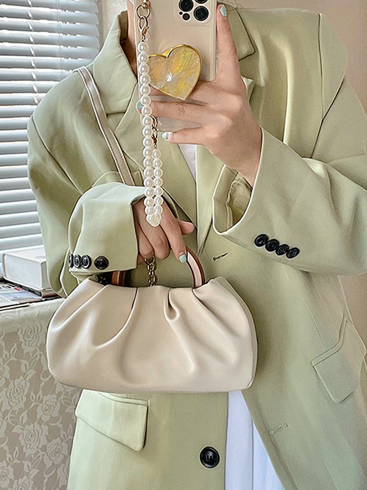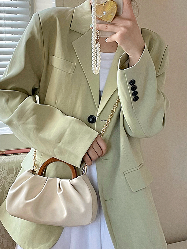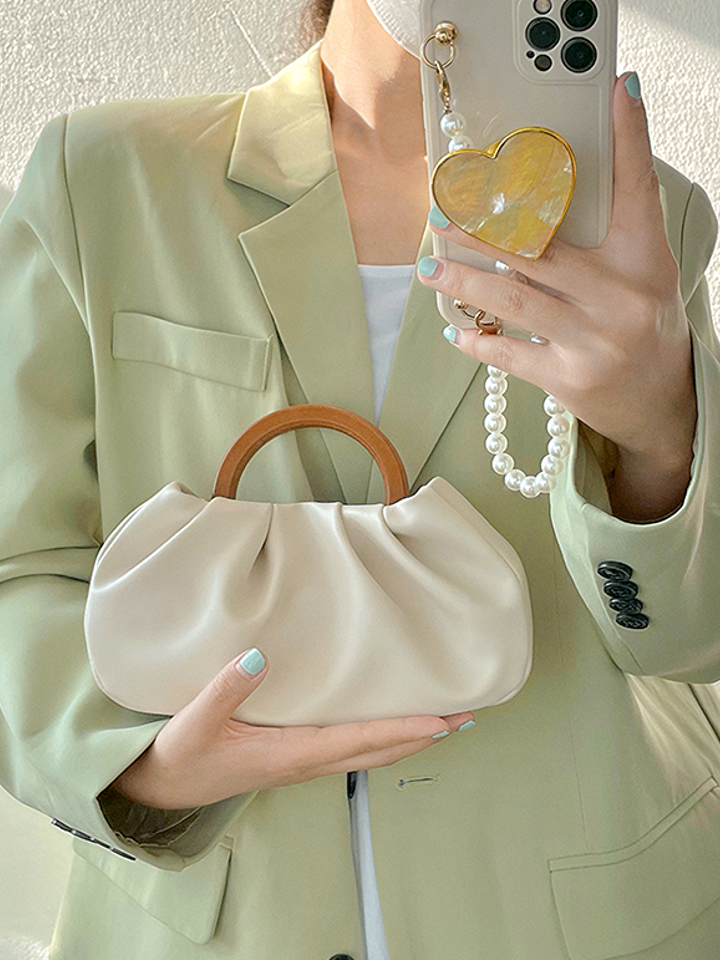 造型以贝壳为元素,采用褶皱拼接工艺,精致细腻,生动自然。木质手柄,精致别致。并注入独立不羁的时尚元素,演绎出现代女性温柔并重的个性。