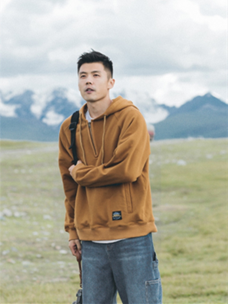 半拉链设计,赋予卫衣年轻的活泼感,是偏合身的那种宽松,上身有型有范儿,色调日系轻复古feel,远看迷人,近看帅气动人。