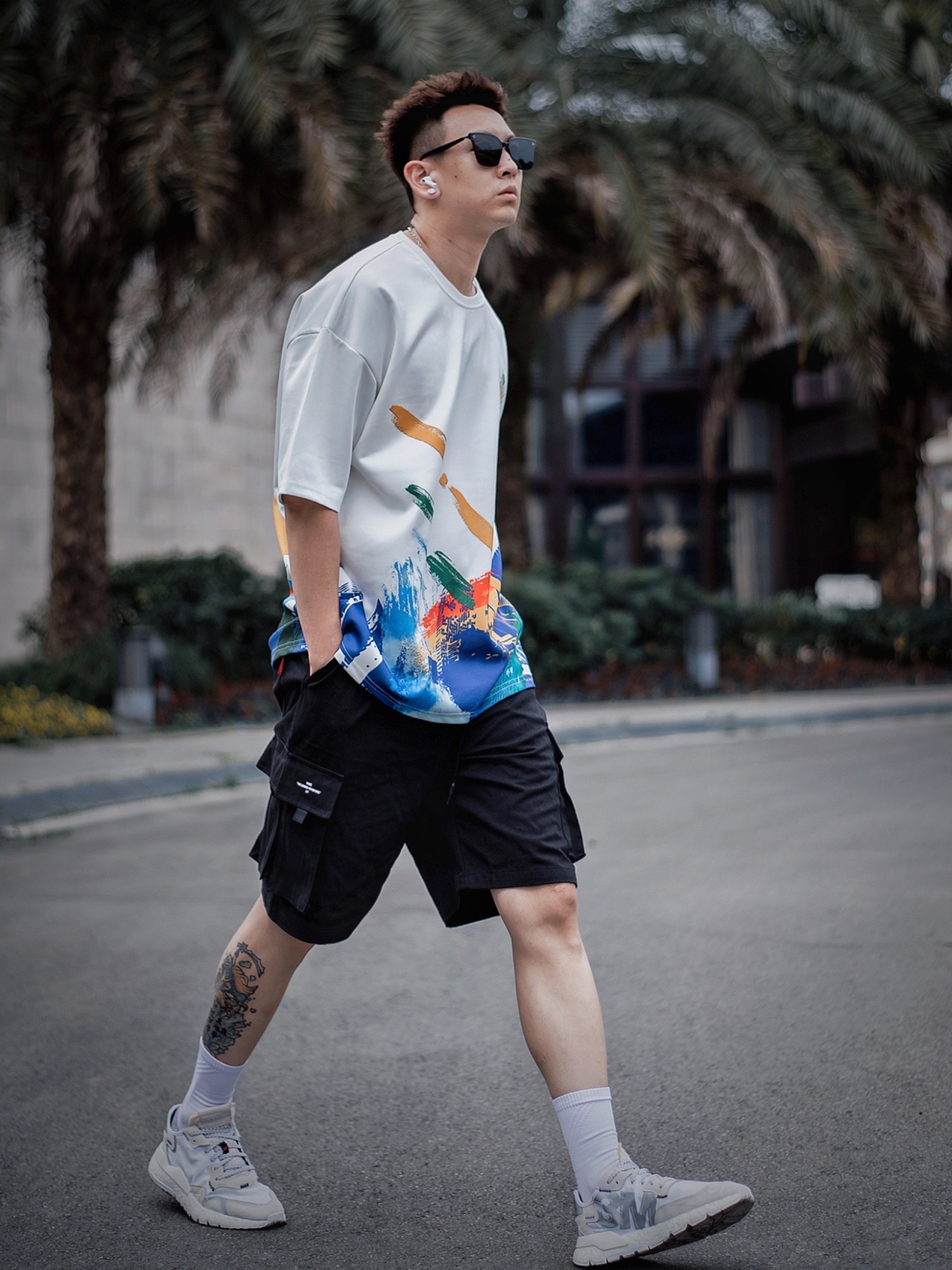 浅色的衣身肯定还是选择一条深色的裤子作为下装进行搭配。九分长裤则是这件短袖T恤的最佳搭配,一套淡淡颜色上身给人一种干净轻松的既视感。修身的版型设计,跟裤子上面的橡胶螺纹口收口,在凸显出你的身型同时,也将干练的气质展示出来。为了将这种感觉显得更加完美,一双白色的帆布鞋就是最好的收尾工作。