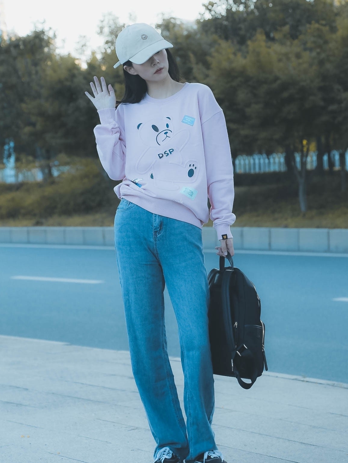 经典的圆领套头版型,穿着舒适时尚,而且很百搭。胸前的炫彩立体小熊,增添了视觉效 果,时尚大方,为整体带来了趣味性。