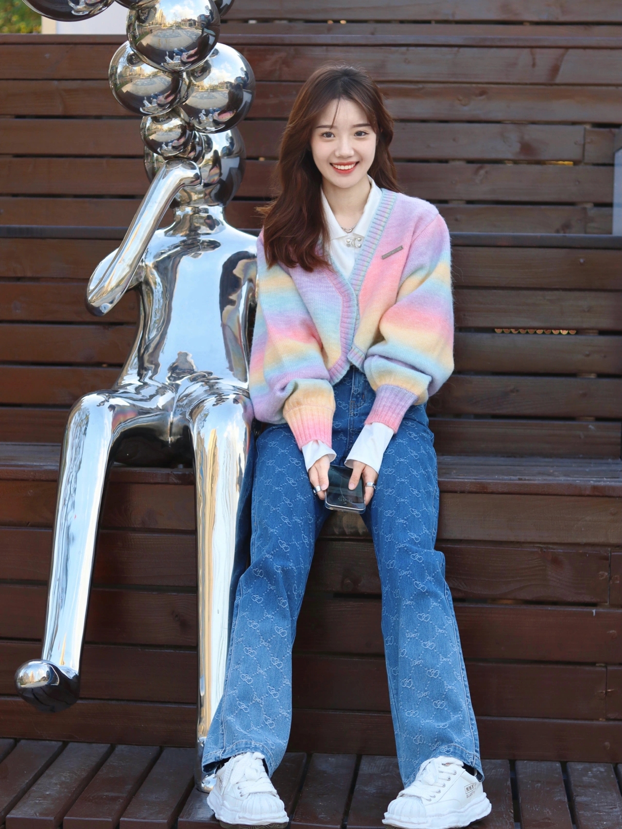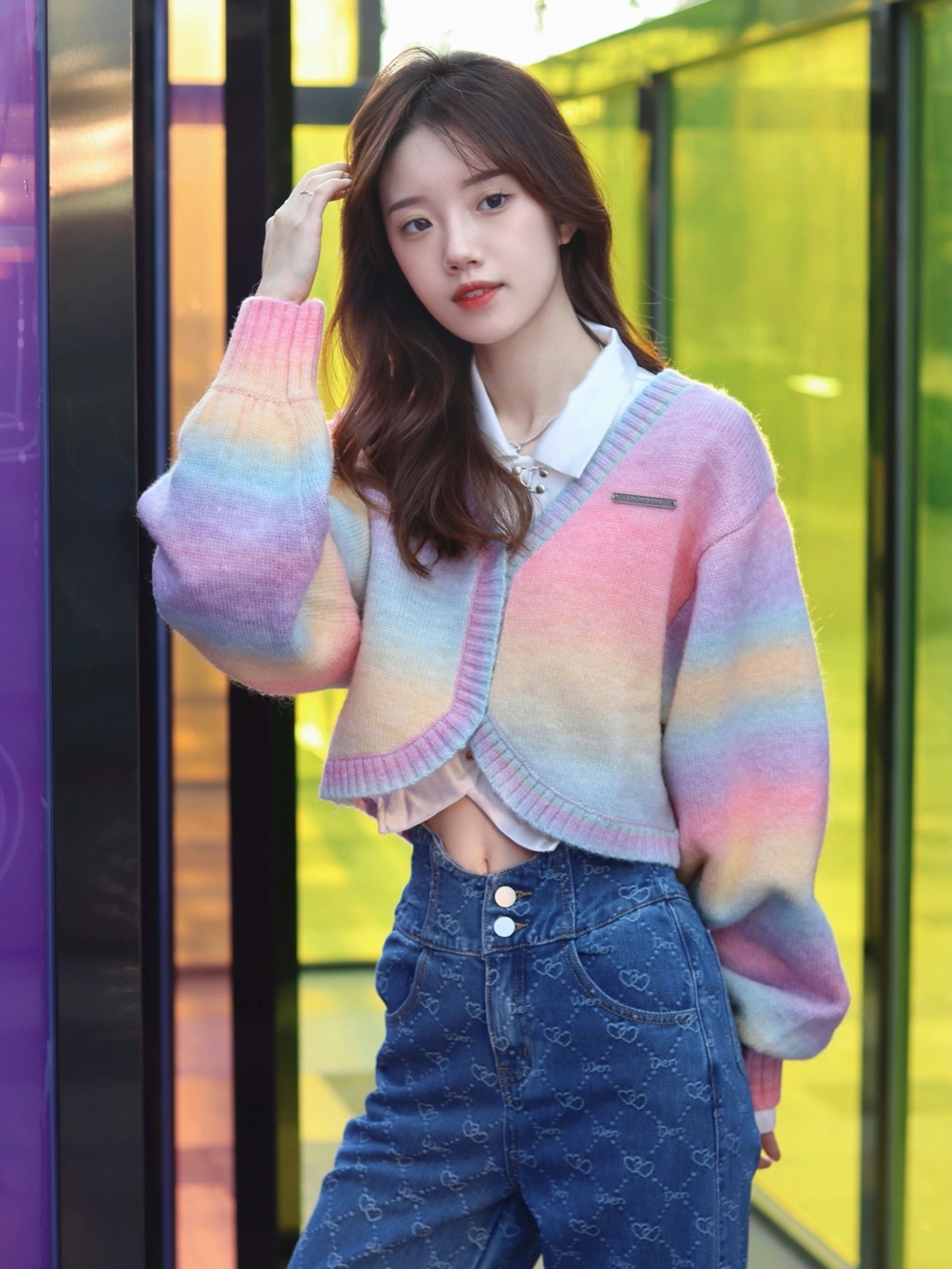 彩虹宽条纹针织衫,复古文艺,清新活力;宽松的版型,舒适的圆领设计,休闲慵懒范;时尚的落肩袖,窄肩的妹子也能轻松的穿出廓型感,时尚有范