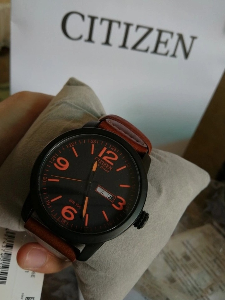 橙色!活力和稳重双结合的男表。 钢带沉闷,皮带也觉得沉闷,胶带手表又觉得活力十足但是太吃搭配。 这款骚气的橙色刻度搭配黑色表盘,再加上棕色小牛皮表带商务休闲兼具,百搭又时尚。