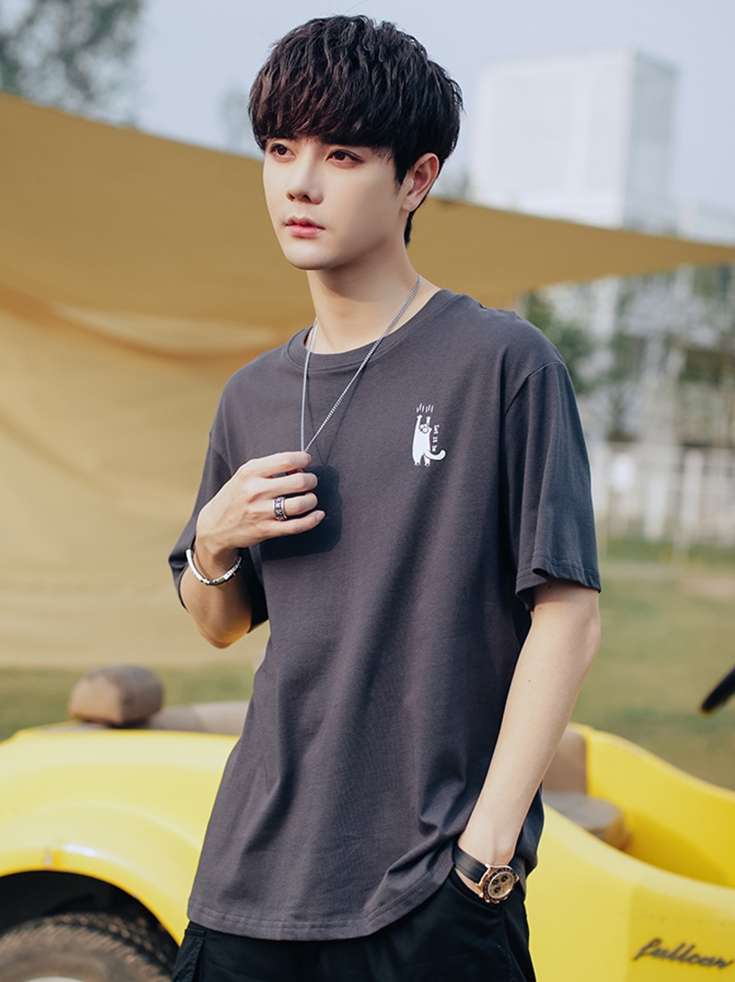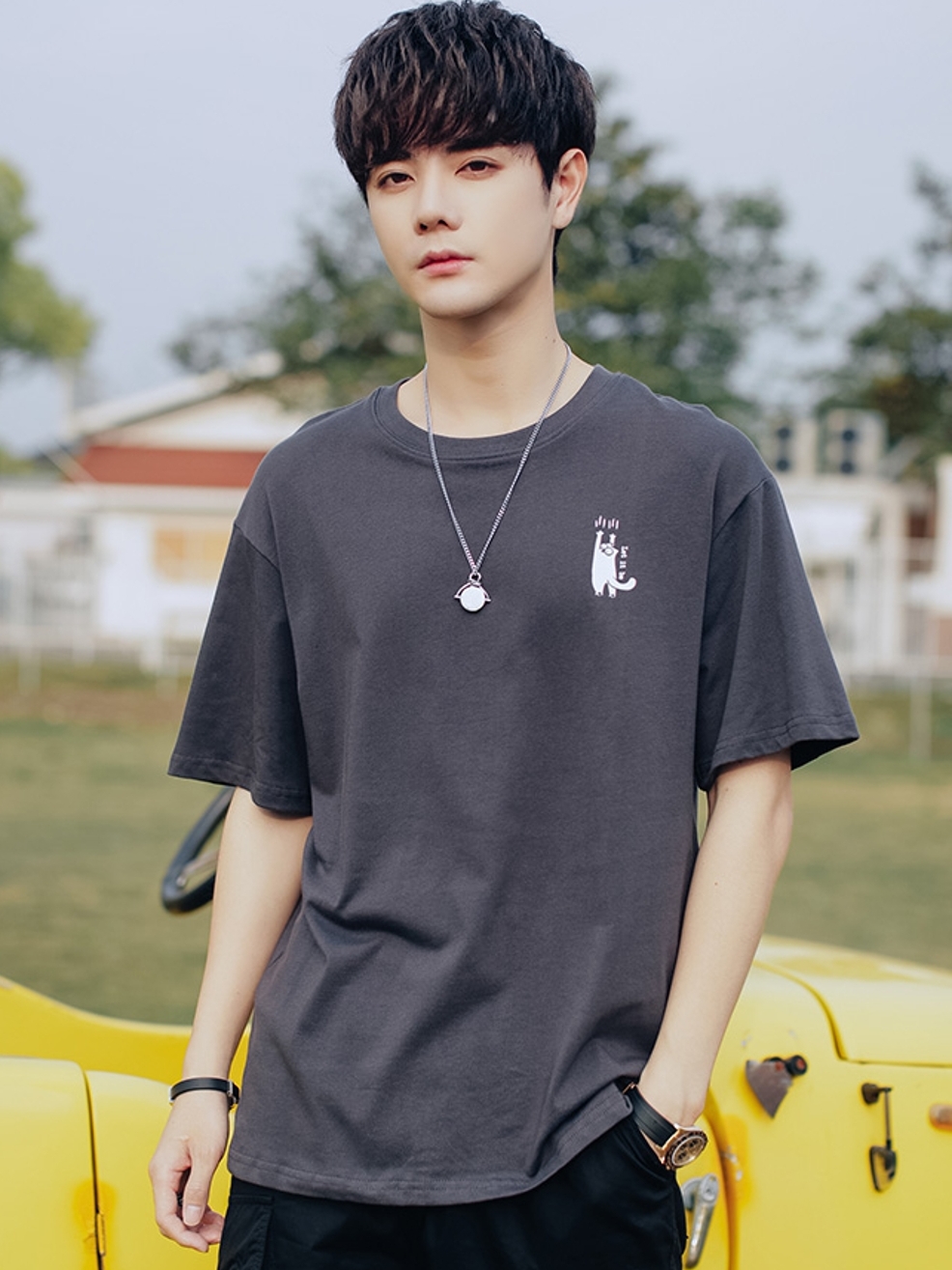 短袖T恤是夏季必不可缺的穿搭单品,非常简约的一款短袖t恤,采用棉混纺面料制成略有弹性,上身舒适,十分适合用来穿搭街头风。下身可以穿着一条黑色的五分宽松短裤,清凉又活力。最后脚踩一双白色的休闲鞋,舒适感满满。