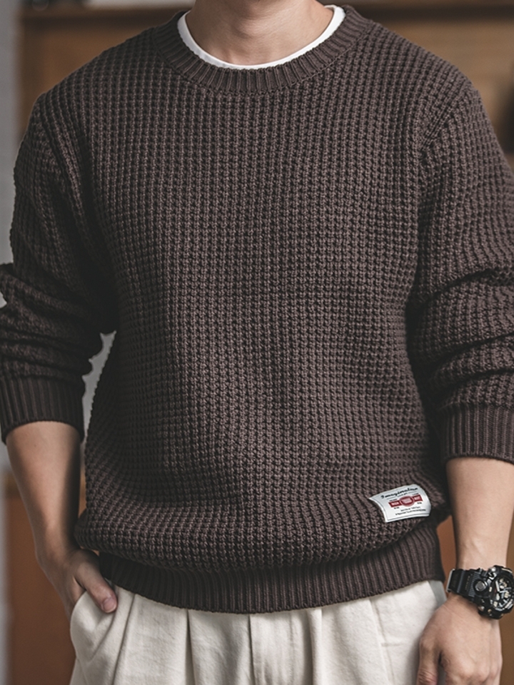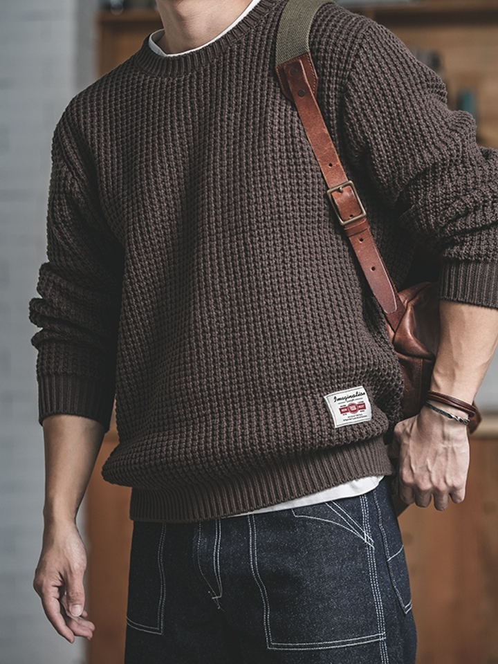简洁大方的圆领很好的修饰脸型,纯色毛衣,搭配度很高的一款,随意配个衬衫打底,都很到位,粗毛线编织,上身舒适度和保暖度都很好,完美诠释今季闲适格调。