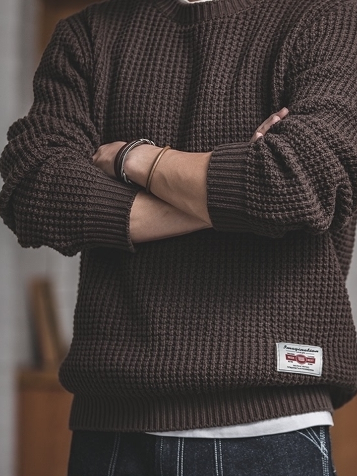 舒适小圆领,粗棒针织给你温暖的回忆,随性的落肩袖,一经出场就极具温暖效果,不紧绷不宽松的衣身可以包容各种身材,使穿着更佳舒适大方。