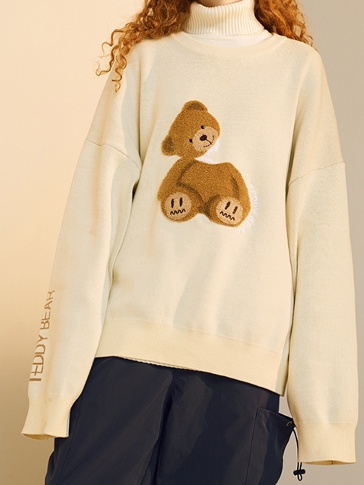 毛衣内里加入了厚厚羊羔绒,柔软细腻,亲肤感非常赞。萌趣的小熊采用的是提花工艺,减龄十足。而且在冬天也很应景,软妹都无法拒绝哒。