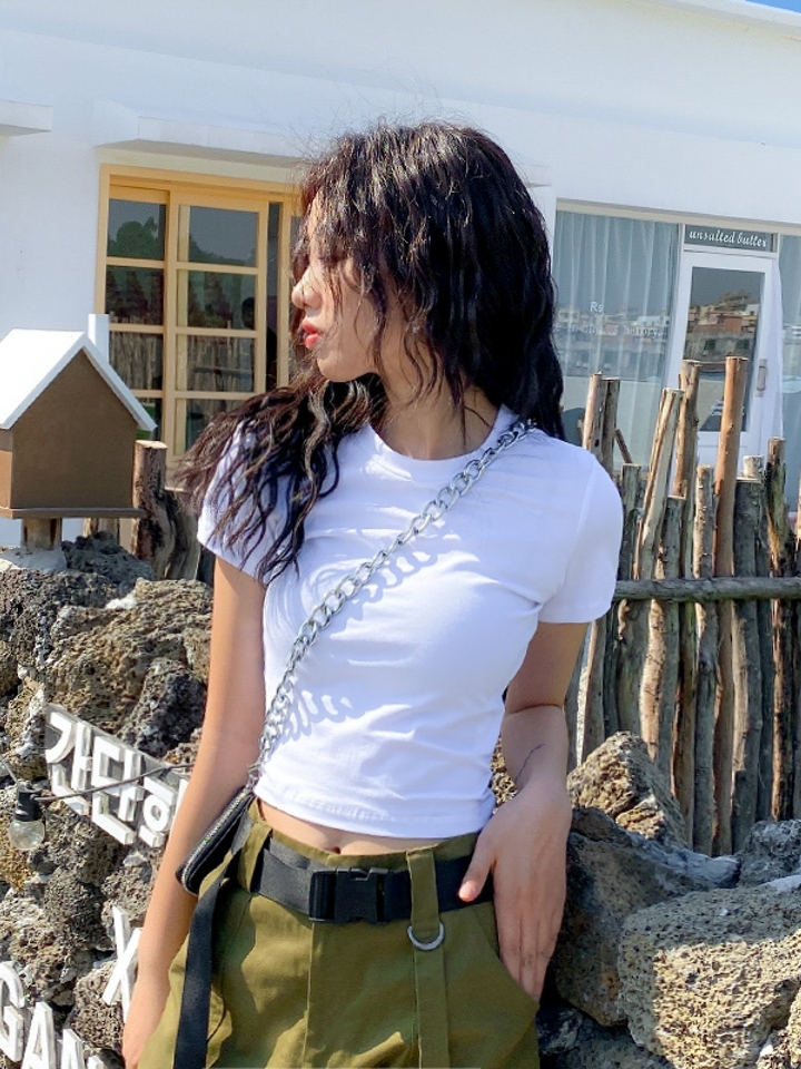设计感白色T恤,棉质面料,布面触感细腻,柔滑又舒适给你无比的亲肤感。