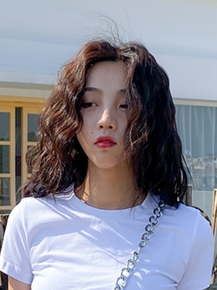 圆领优雅延展脖颈,搭配牛仔短裤很有街拍时髦范。