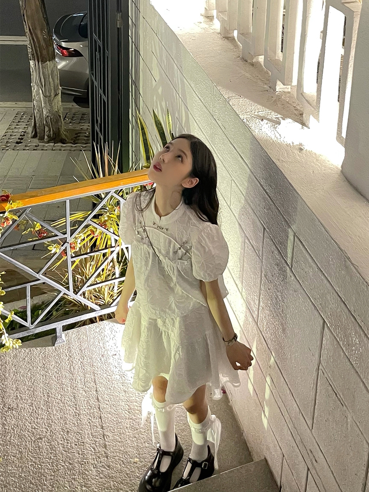没有做常规的裁剪,而是在两侧下摆拼接了有弧度的三角,让层次更加丰富,中间一层锦棉的合理配比,有一定的挺阔感,让整个裙身更有蓬度,里衬精选上乘雪纺,细滑舒适。