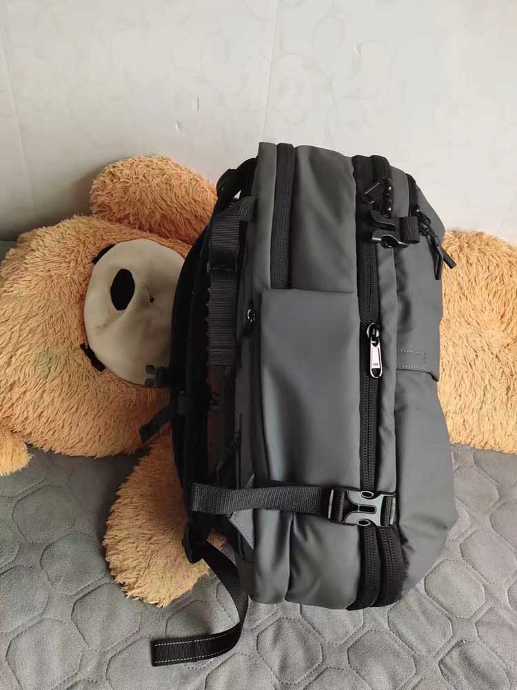 做工很有档次。双肩包款式设计特别,真空压缩排气容量更大,笔记本放里头也能很好保护,还有网格袋干湿分离,还能手提,出差旅行真的很棒。