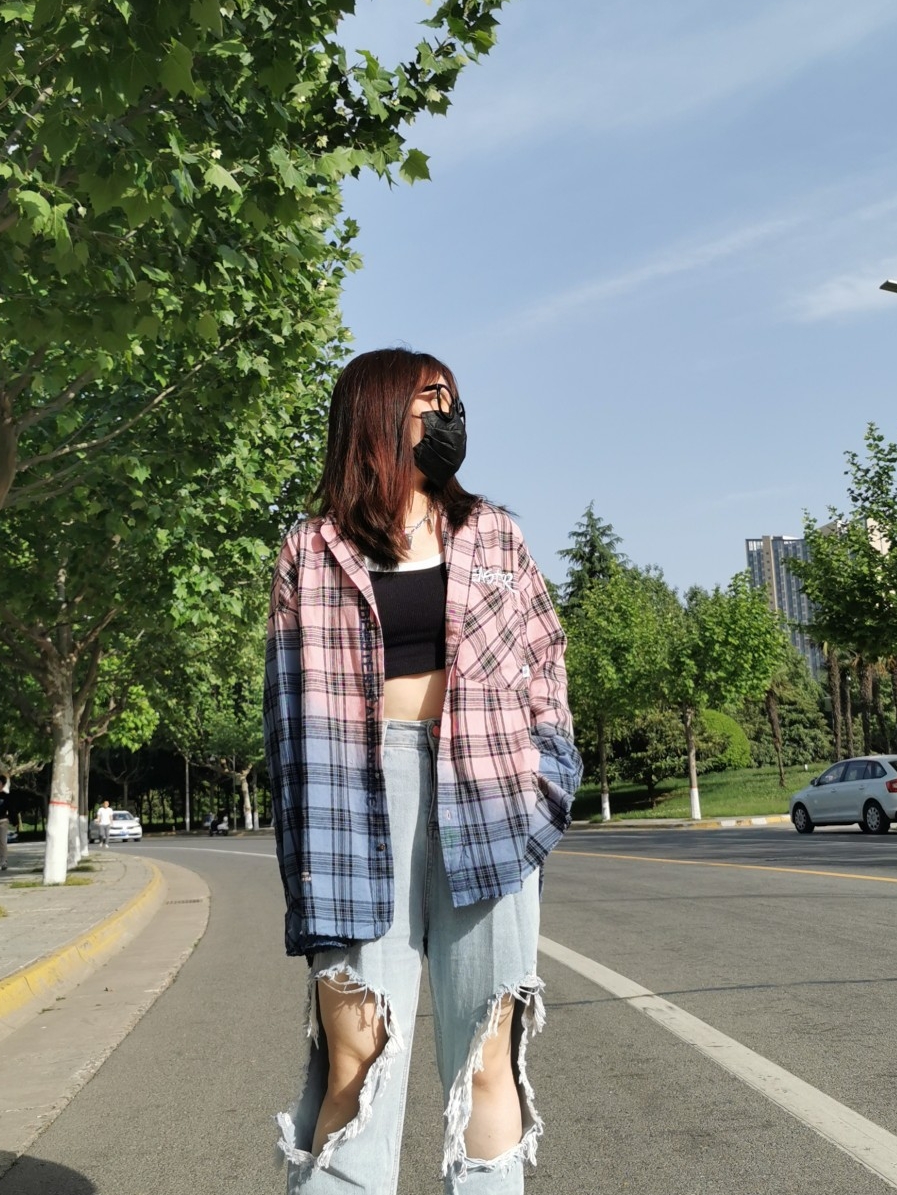格子衬衫也照样能够在日常穿搭中穿出造型感,可以选择一件自然洒脱的纯色打底进行叠搭,同时配合衬衫敞怀来穿,营造出强烈的学院风格,下身一条深色的休闲裤进行搭配,突显洒脱自由的休闲风格。