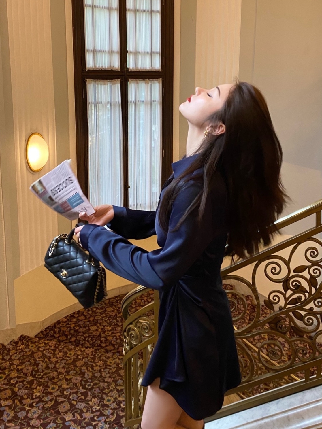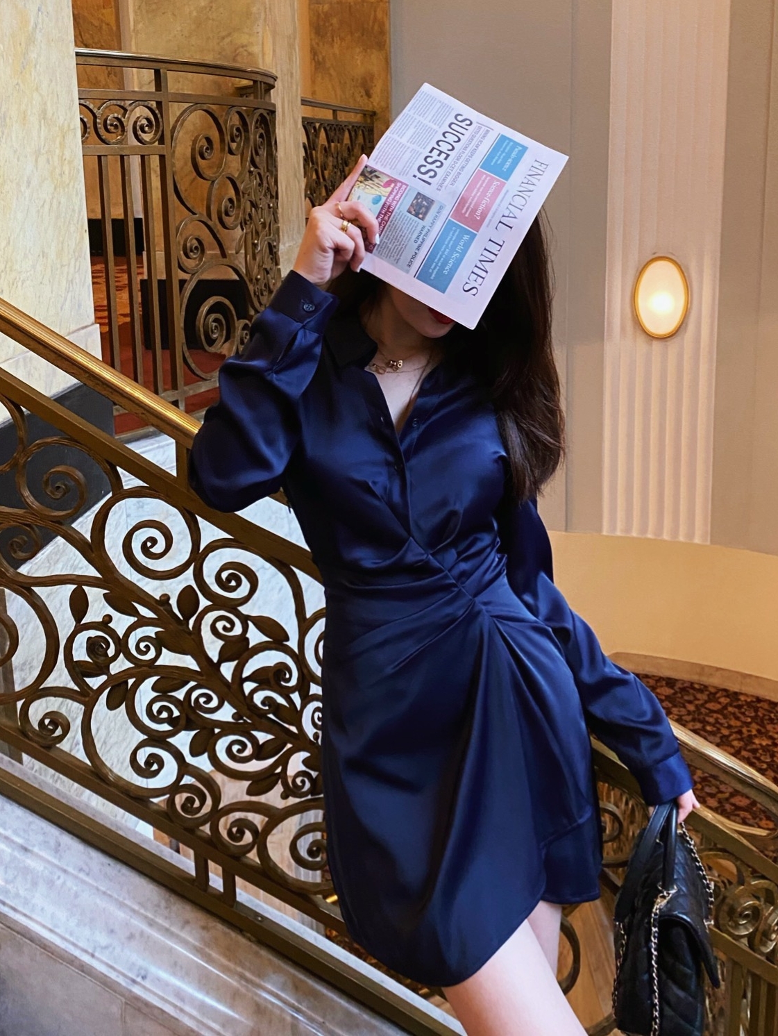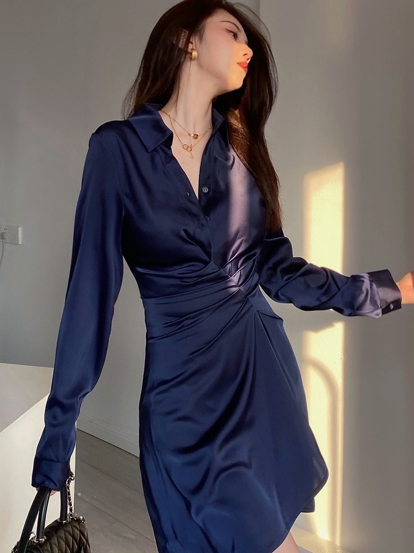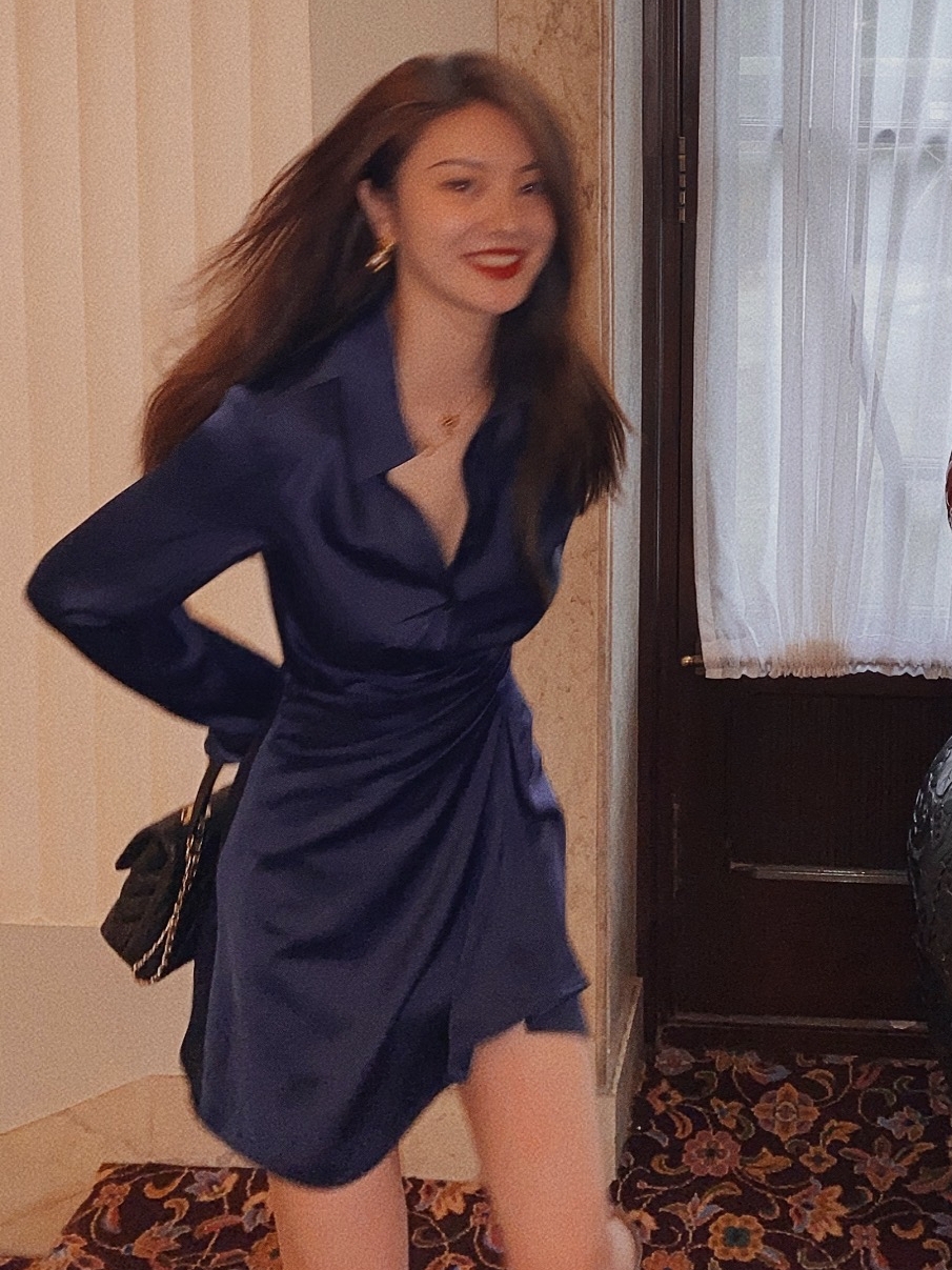 面料自带光泽感,是深蓝偏藏蓝的颜色,很星空的感觉,自带高级感。并且超级超级显白,就是不挑肤色的显白,你们一定一定要试试!