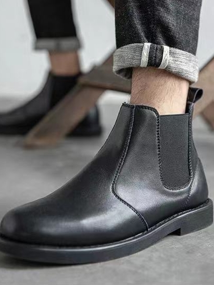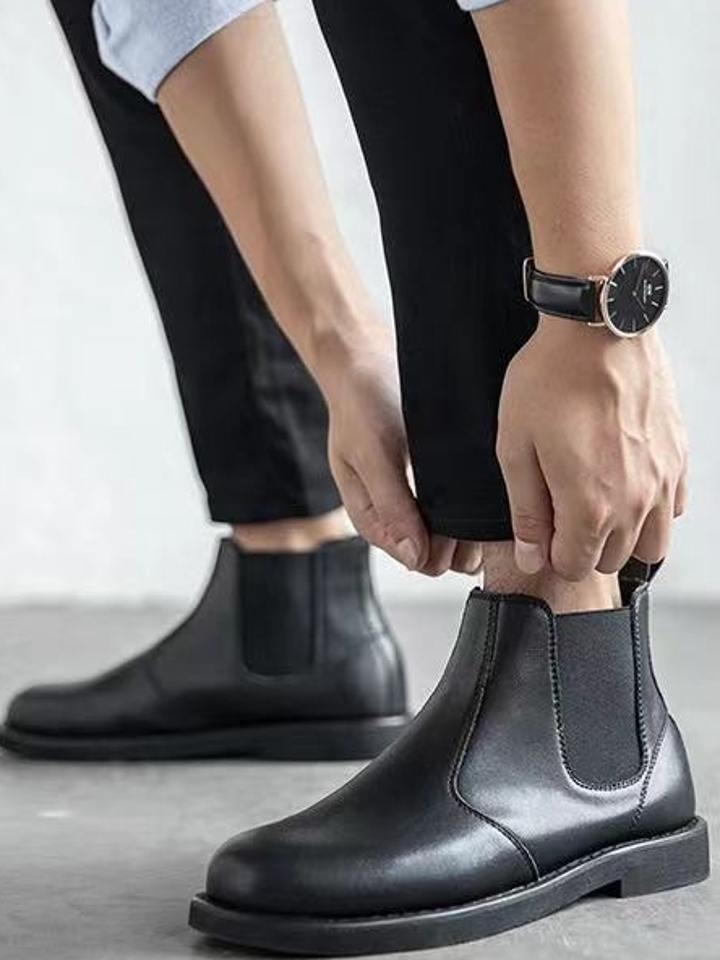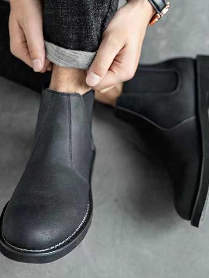 英伦复古切尔西靴重新华丽回归。本款采用意大利进口反绒皮,外观典雅大方,透气性好,易打理。两侧的松紧带添加,穿着便捷美观时尚,耐磨的鞋底设计,舒适行走不累脚,型男必备。