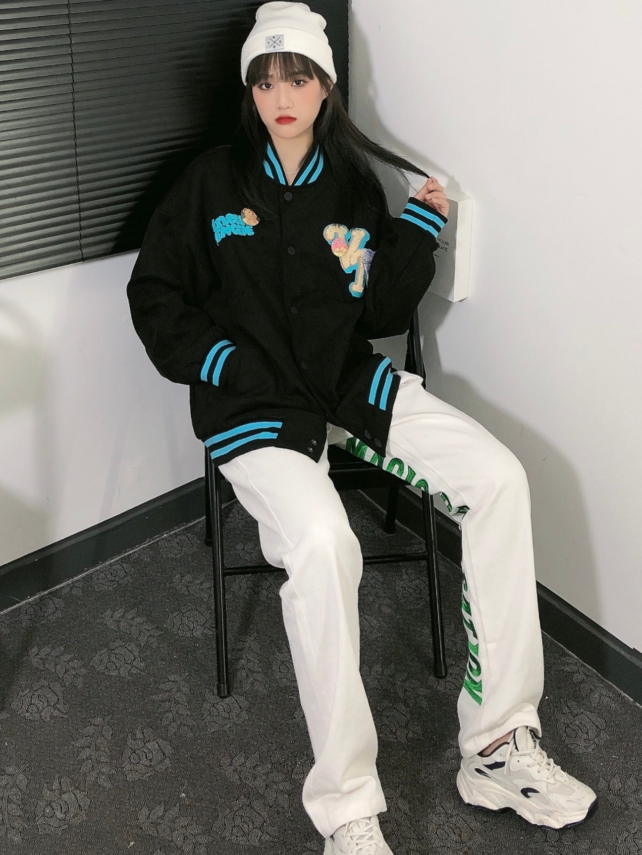 这条休闲裤的配色也是我比较喜欢的色调,是这种经典的白色色调,显得很是清新典雅,搭配上撞色的字母印花图案,显得潮范儿十足。