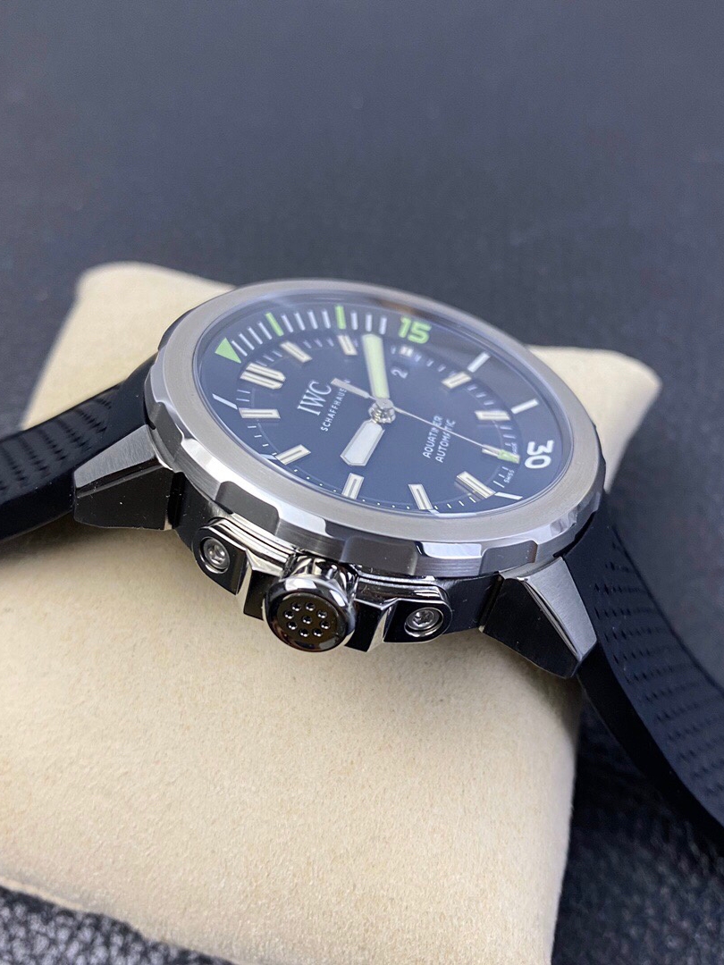 这款腕表的表壳直径为42毫米,是IWC万国表潜水员腕表家族中尺寸最小的表款,也让足以符合现在所流行的大表径风潮,是一个极为阳刚、动感的专业运动型腕表。