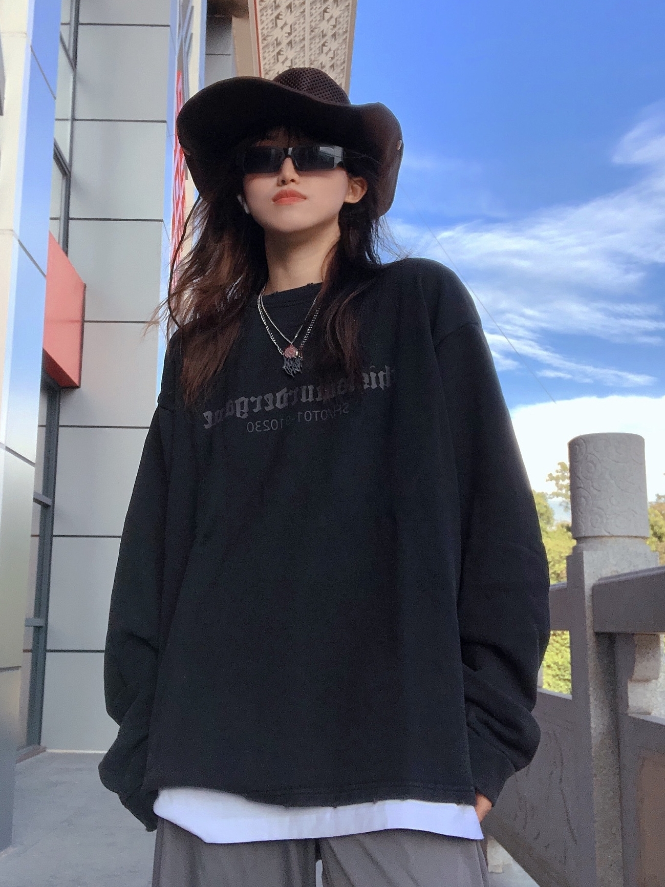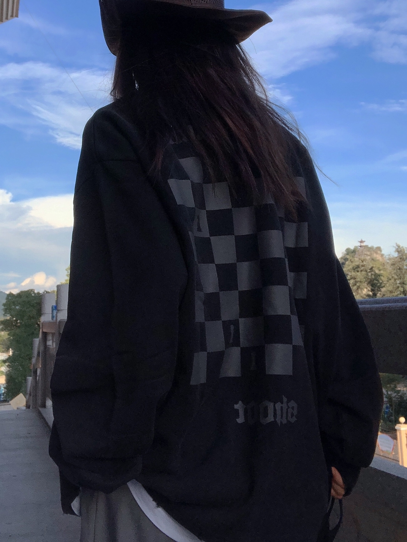 黑白两个经典色调设计,双袖黑白棋盘装饰,瞬间提升整体的层次感同时增加视觉体验。辅以涂鸦抽象字母,给人新鲜感与时尚感。