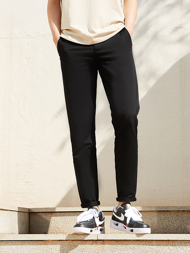 纯色长裤十分适合春夏季单穿,没有多余的点缀和装饰,只有简明整洁的走线,让裤型更加立体自然,手感光滑的混纺面料,略带光泽感的黑色和不易起皱的面料,让你不仅在穿着时舒适,又十分有型。