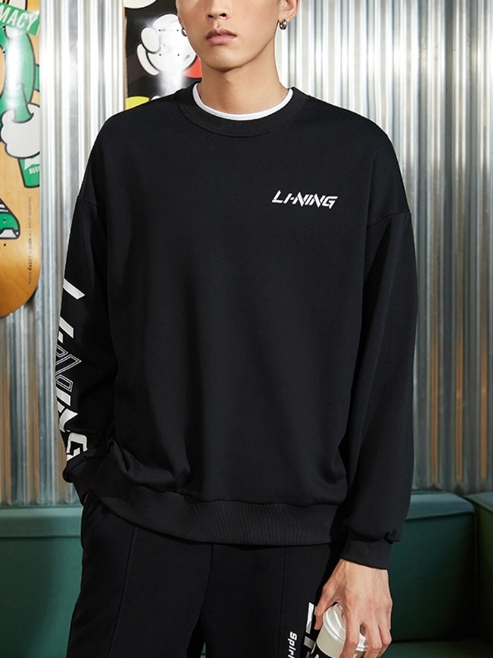 李宁运动生活系列卫衣套头衫,采用聚酯纤维面料,舒适透气。经典大LOGO款式,运用石头元素图案作为填充;配色基础,易于穿着。
