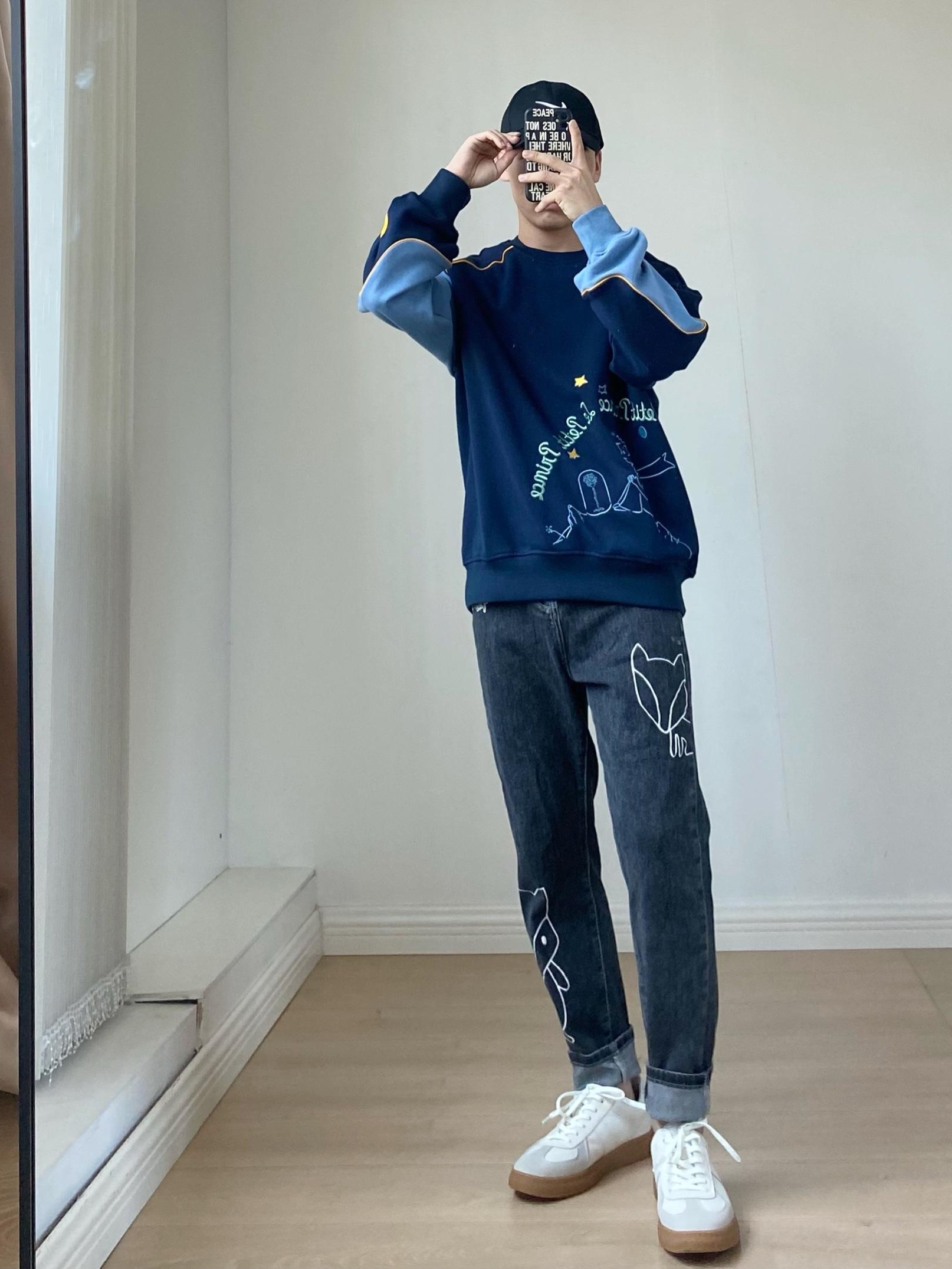 bosie与《小王子》联名的一款卫衣,整体纯色为主基调,搭配了蓝色和浅灰色,玩转秋冬不同的风格穿搭。在衣身上点缀了卡通的小王子刺绣图案,彰显联名主题。