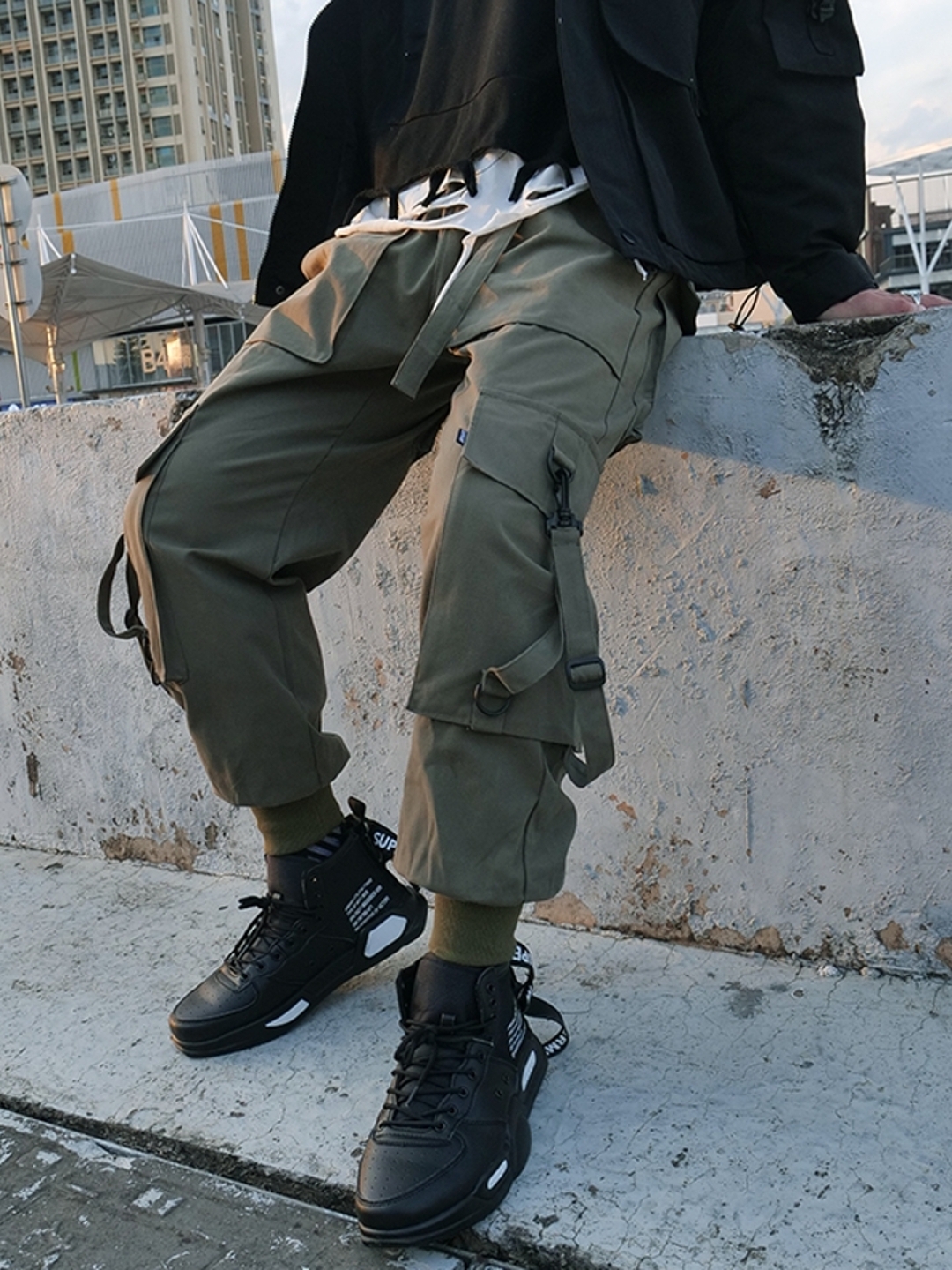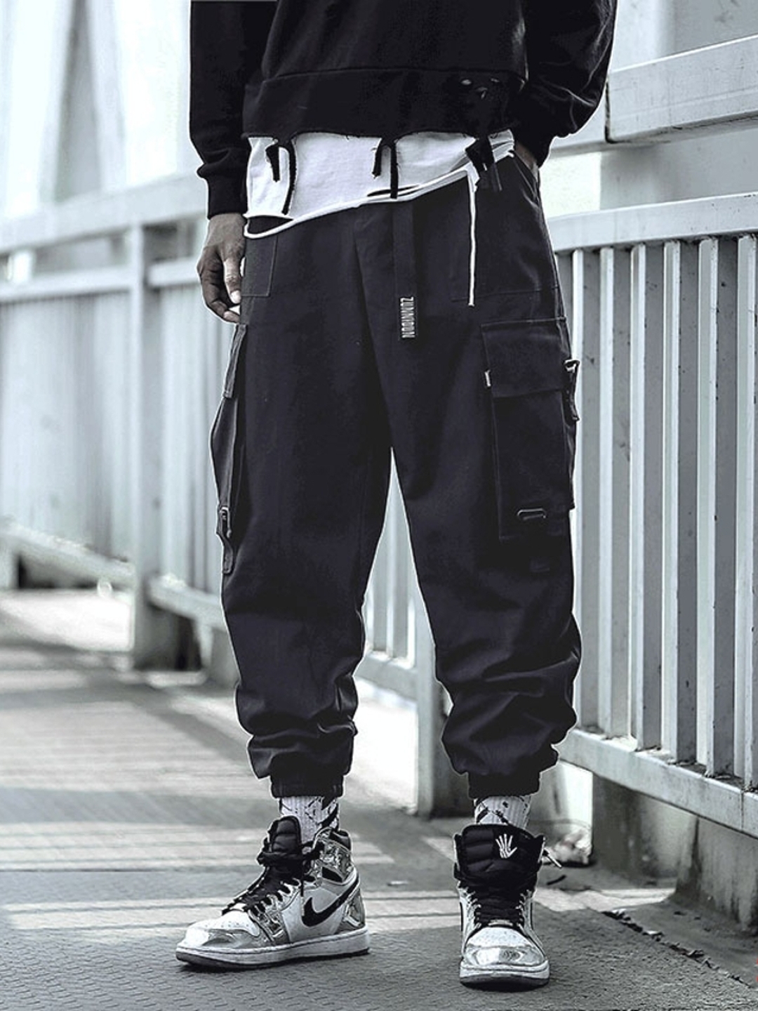 高街束脚运动裤,大口袋设计融入工装元素,更具潮范儿。束脚设计动感十足,尽显高街格调。