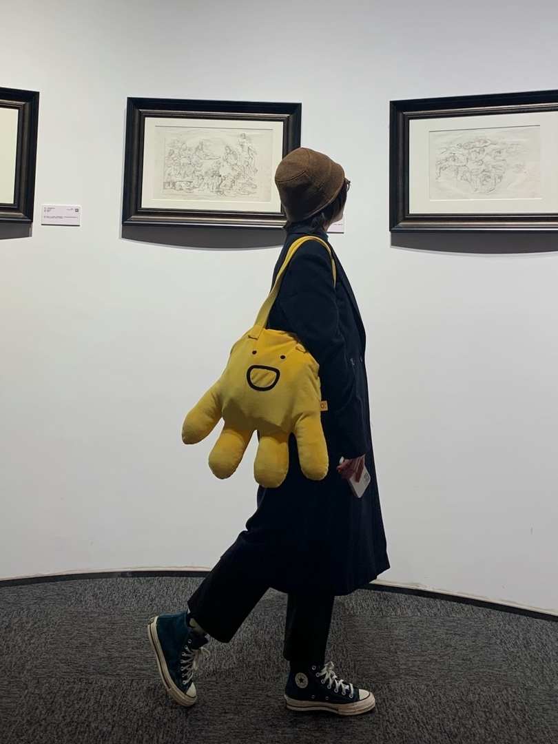 包包的版型是比较基础的款式,但是它在装饰上下了很大的功夫,中间的部分做了半透明的条状拼接,结合字母和小章鱼的图案颇有海底总动员的萌感。