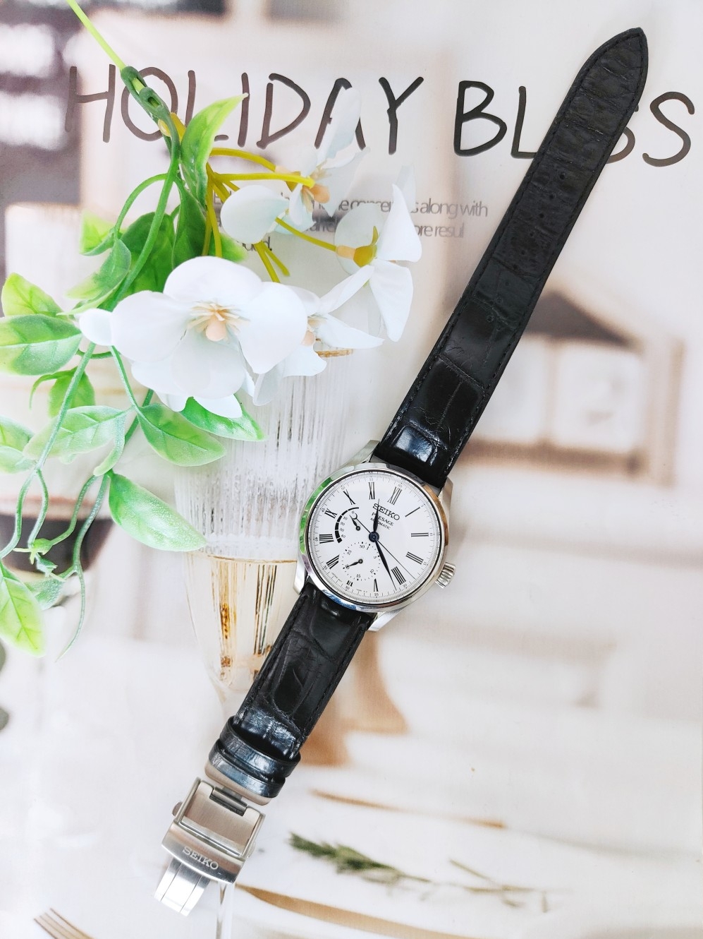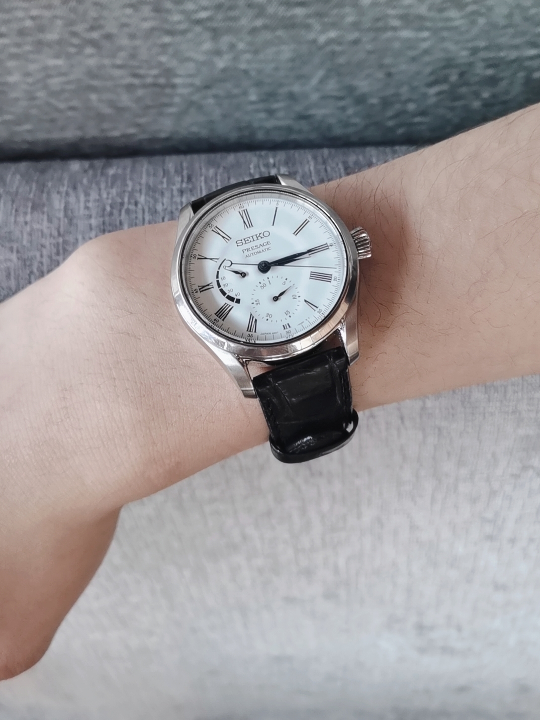 以前就听说日本精工手表不错,不过没想到这款SEIKO精工手表这么能打。40.5MM的珐琅表盘温润耐看大小特别合适,镜面选用人工合成蓝宝石明亮通透。简洁大方的罗马数字设计,醒目大气便于读时。搭配的黑色鳄鱼皮带选用三折扣设计佩戴起来特别方便
