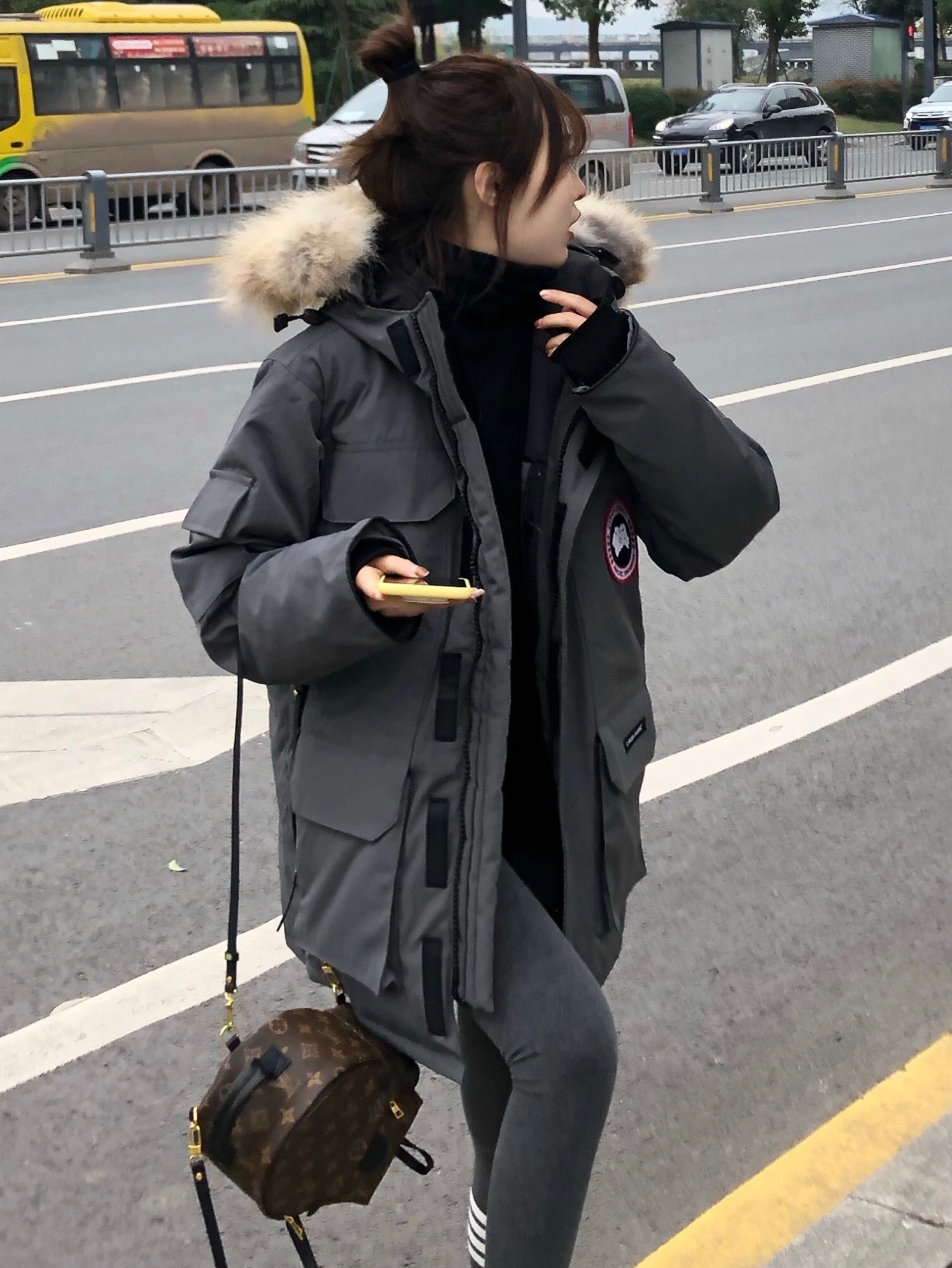 这款颇具时尚感的羽绒服,连帽的设计很休闲减龄的,中长的版型带着几分随性洒脱的意味,内搭修身毛衣与休闲裤,彰显时尚感。