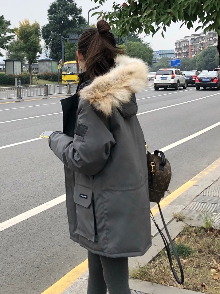 连帽的款式,搭配毛毛领,大风天也不用担心,完美的带给您温暖和舒适,宽松的版型颇具包容感,衣身立体兜兜点缀,丰富层次感。