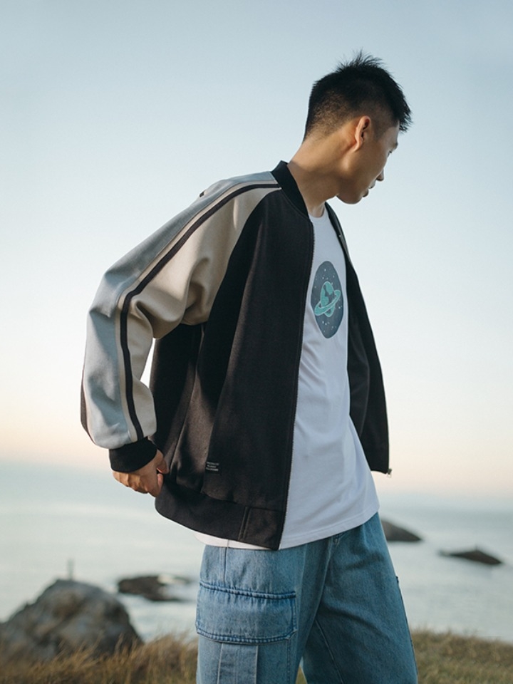 一件黑色夹克就搭遍整个衣柜,优质的面料,柔软舒适,穿着亲肤透气。撞色拼接设计,丰富视觉层次感。