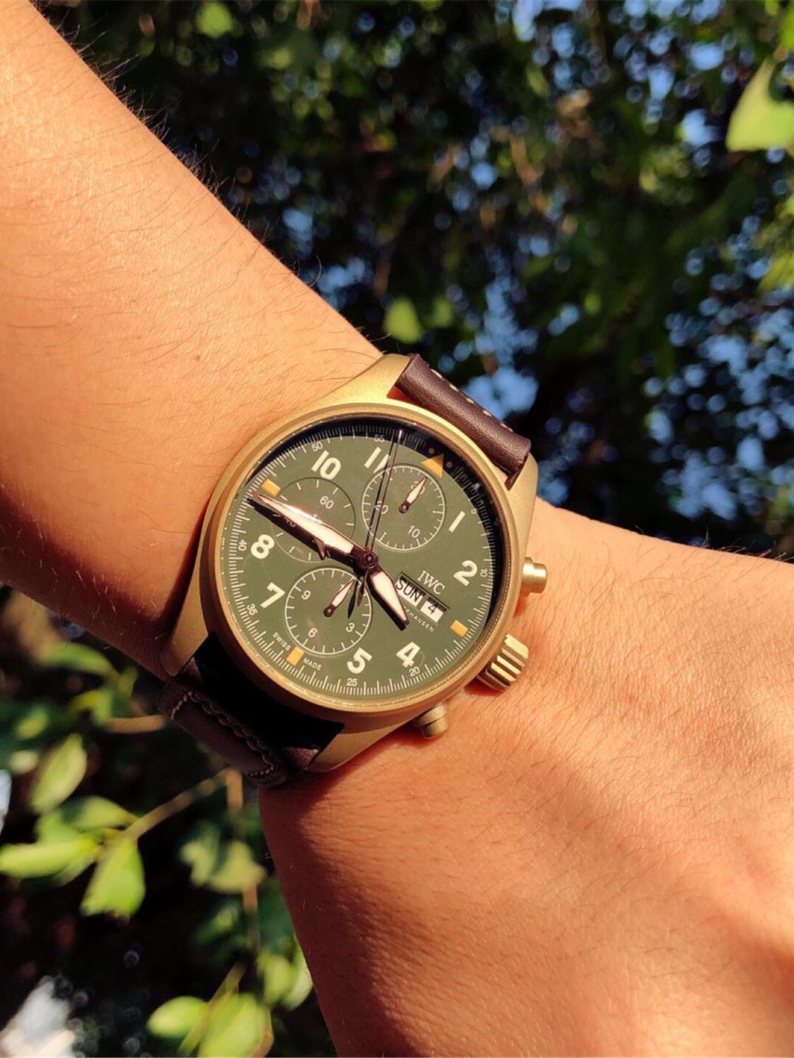 从之前大表盘缩小至41mm,在9点和12点钟位置分别设立小时与分钟的计时盘,而且ZF厂牌推出过很多青铜腕表,所以对于这门独特的材质来说驾车熟路,不仅拥有多项IWC的核心技术 且积累了大量青铜表的经验,所以这枚腕表的做工大家毋庸置疑。
