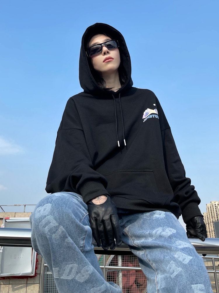 宽松的版型设计,加上个性的印花,潮流又时尚。