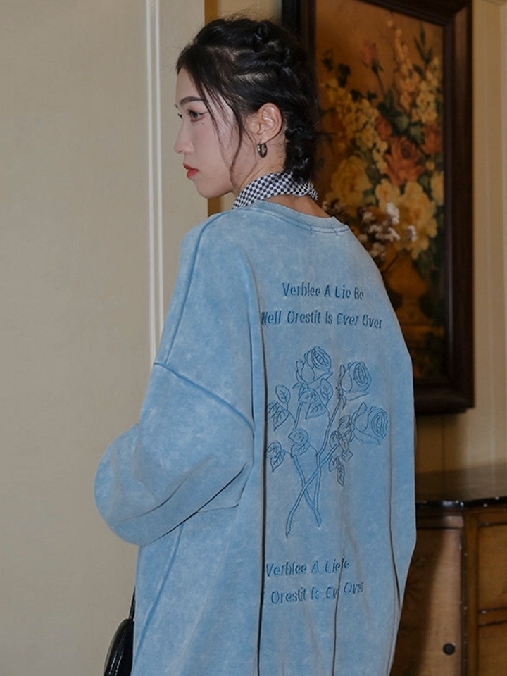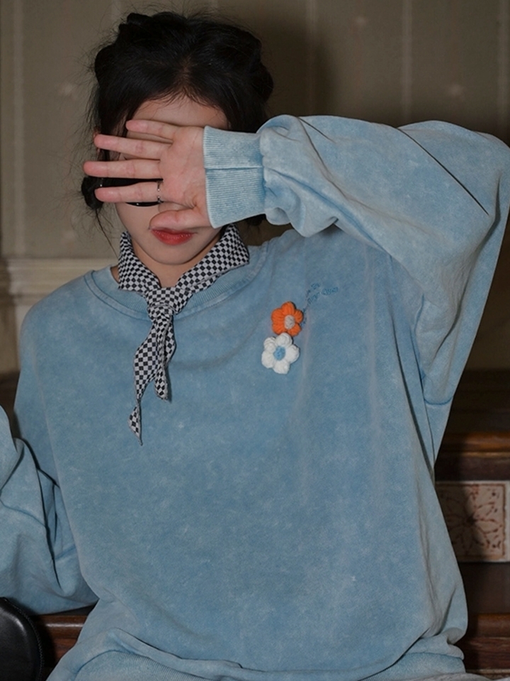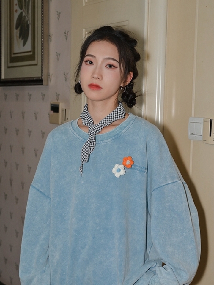 韩版圆领长袖宽松设计感上衣,尽显宝贝甜美小公主风范。