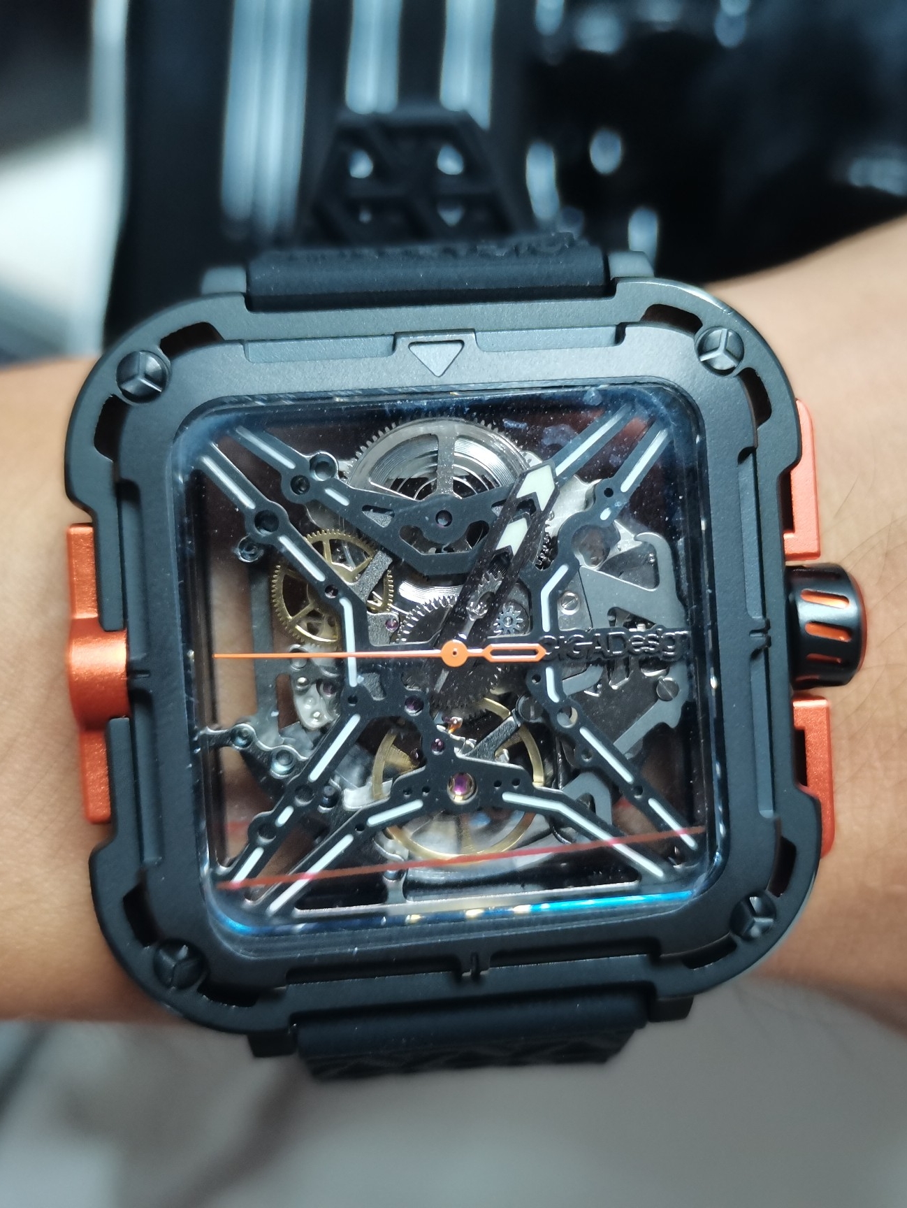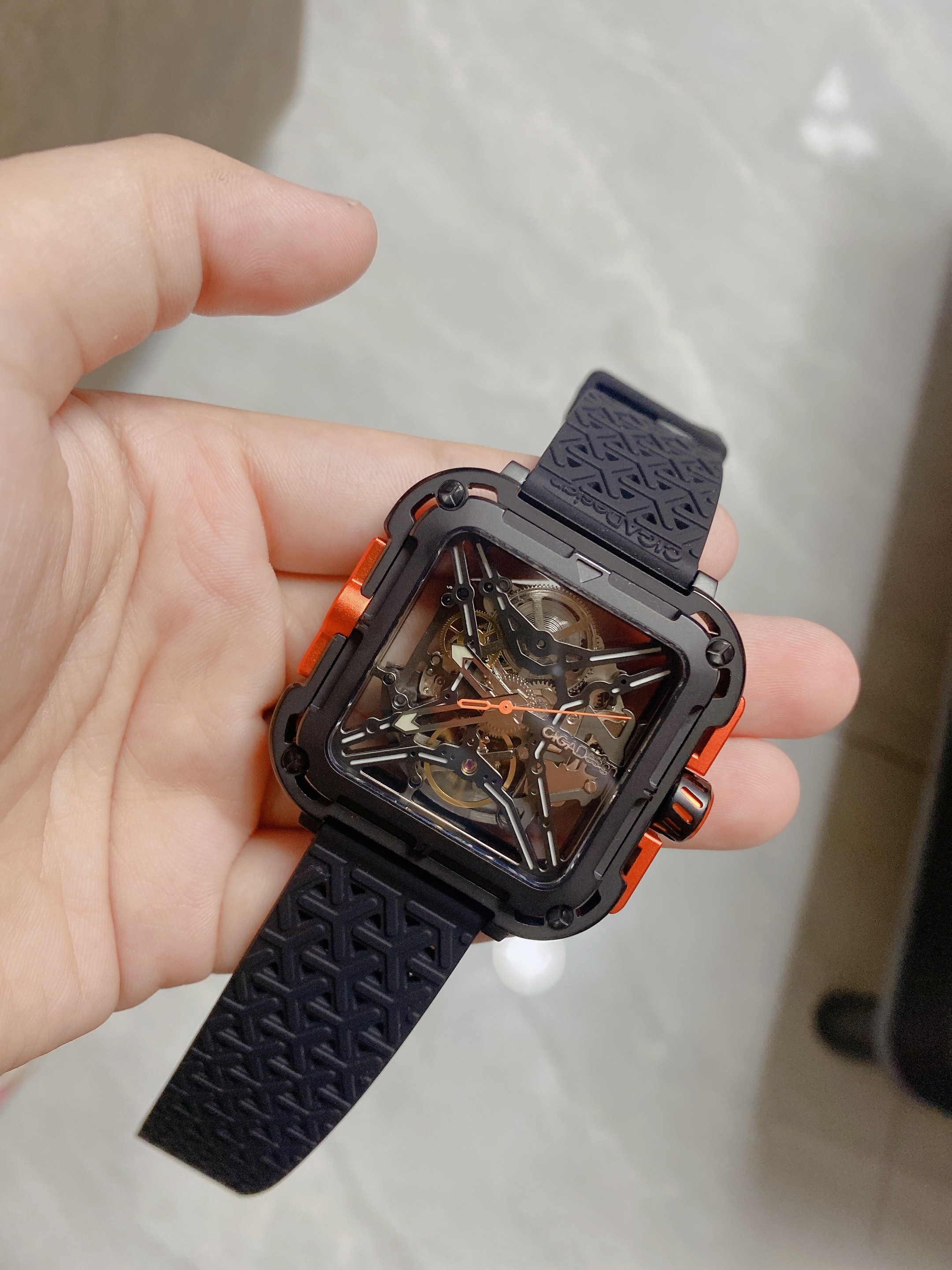 双面镂空效果不错的,表盘不大适合小手腕,紫色比橙色更骚气,表带橡胶镂空夏天透气性比潜表的全胶要好。很漂亮,老婆送我的。