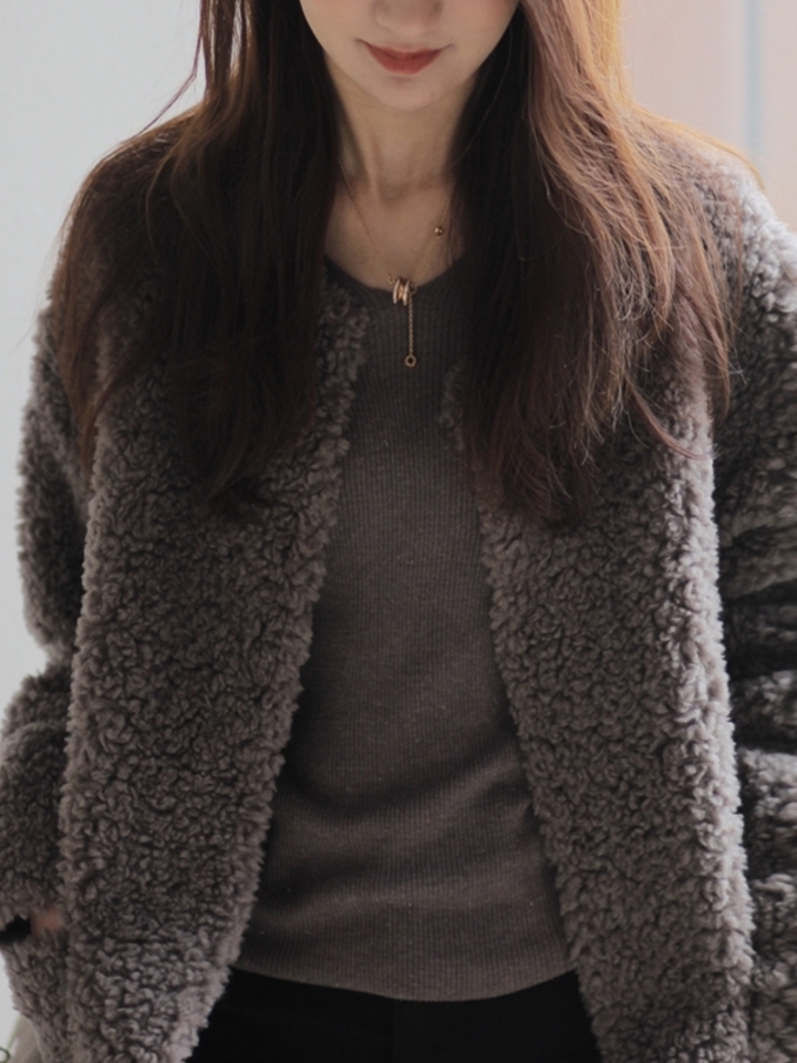 厚实细腻的羊羔毛外套,简约的纯色,质感上乘,翻领设计帅气干练,短款版型拉伸身材比例,更显高挑。