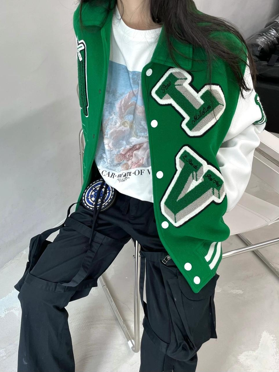 这件外套在年初刚走完秀的时候就已经被定为了爆款,将棒球夹克和绿色超火的两个流行元素巧妙结合,背后的刺绣图案寓意为“吸烟有害健康”。