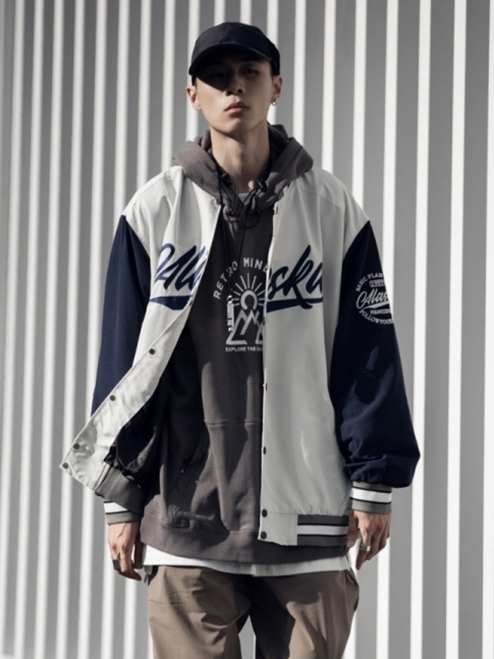 这款夹克衫为立领设计,采用比较经典的棒球服式版型,上身效果非常不错。搭配立体感突出的撞色修饰,精致有型,古朴大方,上身尽显型男利落风范。