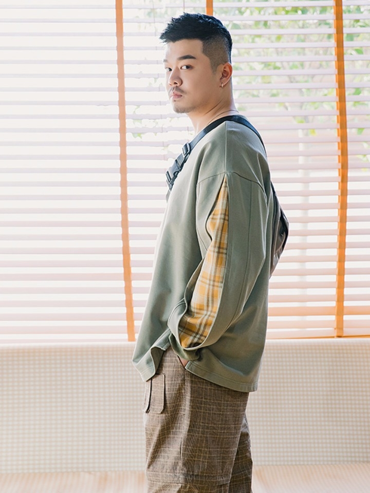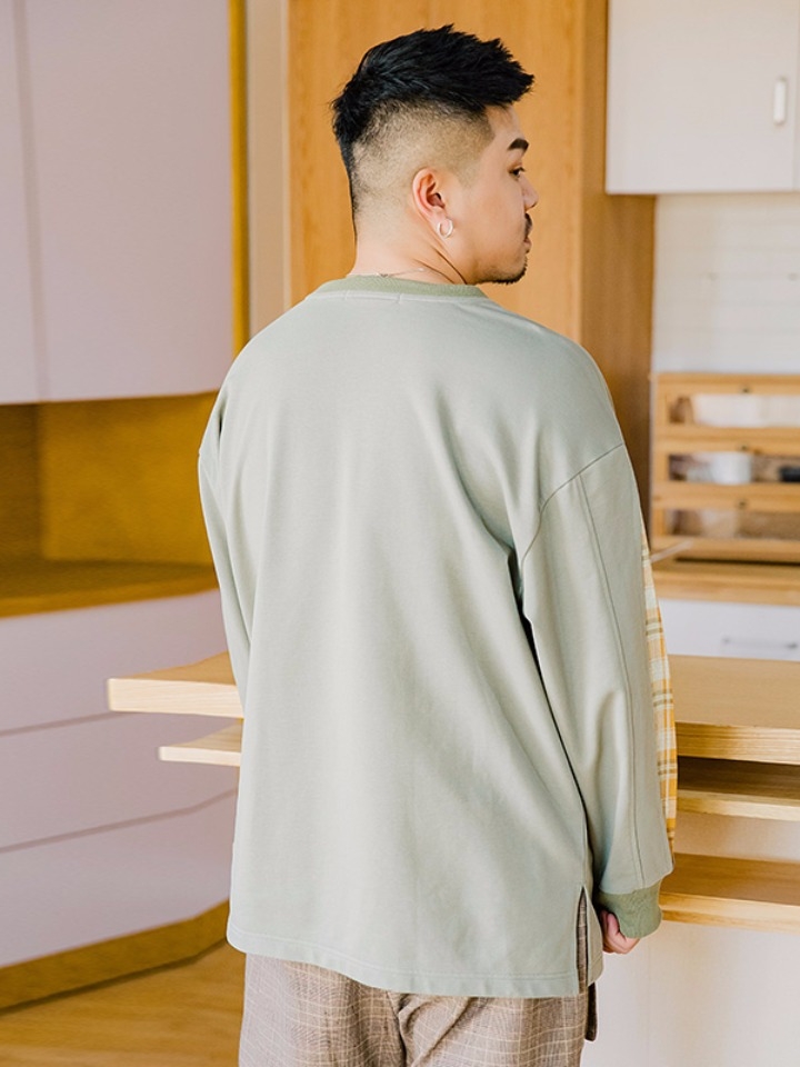这是比较文艺的一款格子拼接卫衣给人一种整体感,素净颜色搭配,更显简约干练风格。搭配简单的休闲裤日常穿搭无忧。