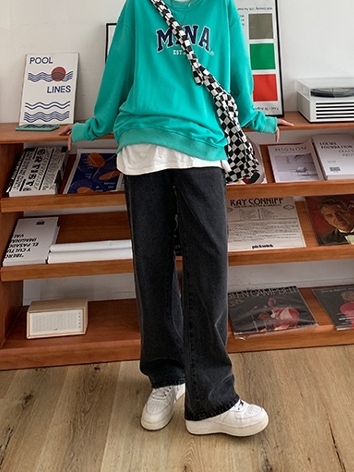 有一种复古情怀,有一种特别的味道,宽松的直筒廓形可提拉腿部线条,显瘦修腿型,裤脚处的毛边设计有种美国西部牛仔不羁的感觉,搭配什么外套都轻松HO