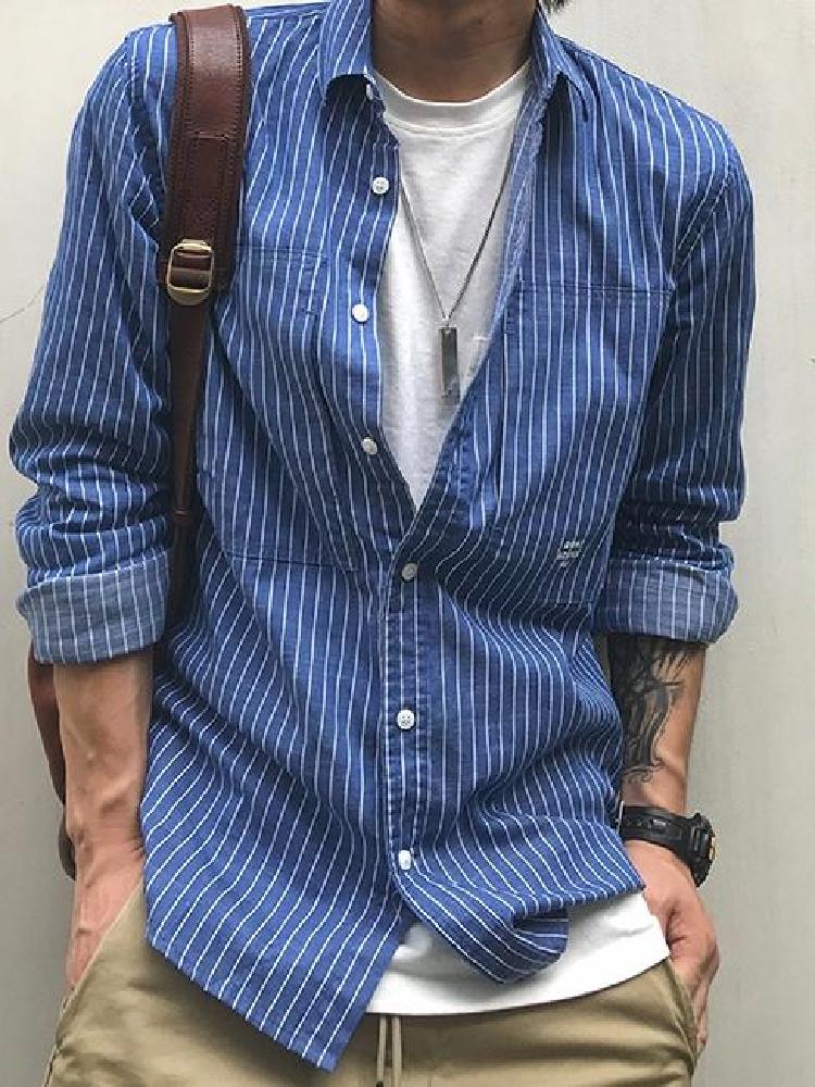 潮流条纹拼接男士长袖衬衫,纯棉质感面料自然舒适,笔直密实缝纫做工精湛。立体修身剪裁穿着舒适帅气!潮流对纹条纹拼接显得斯文有个性,不拘平凡单调