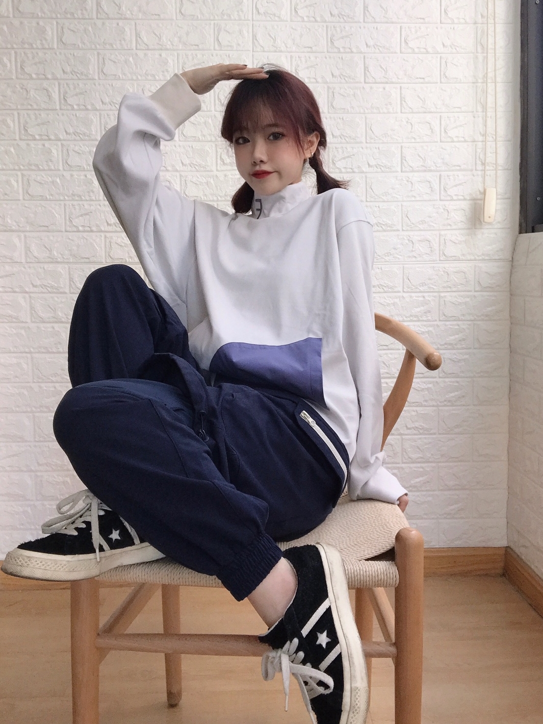 其实一开始都没想到能穿出这样可爱的效果,但上身后是真的香啊。风格简约又很遮肉肉,穿起来就是一乖乖的萌妹纸形象,搭配起来也简单,下装黑色休闲裤配平度鞋就超可爱。
