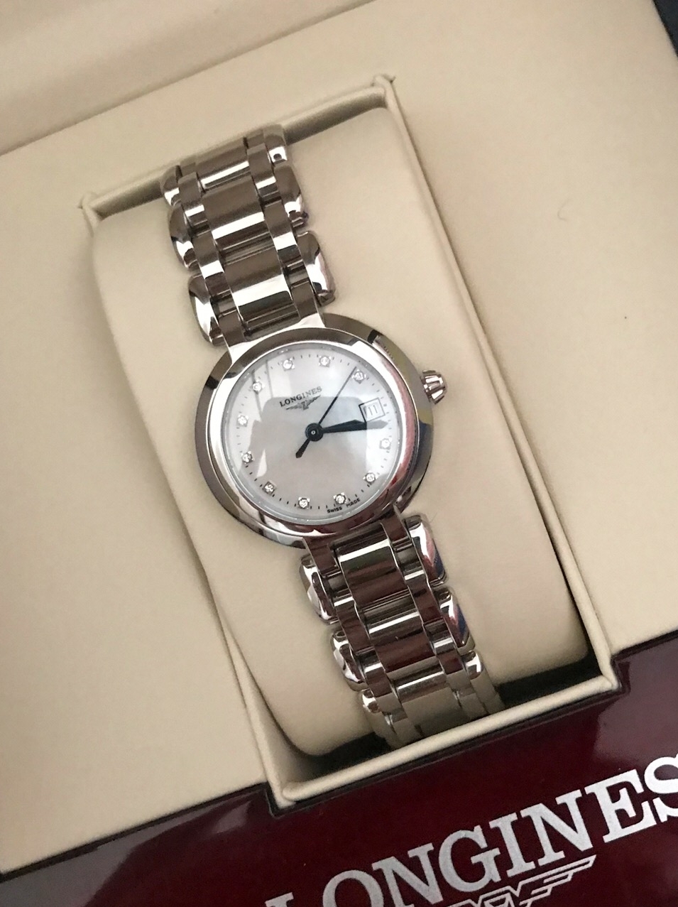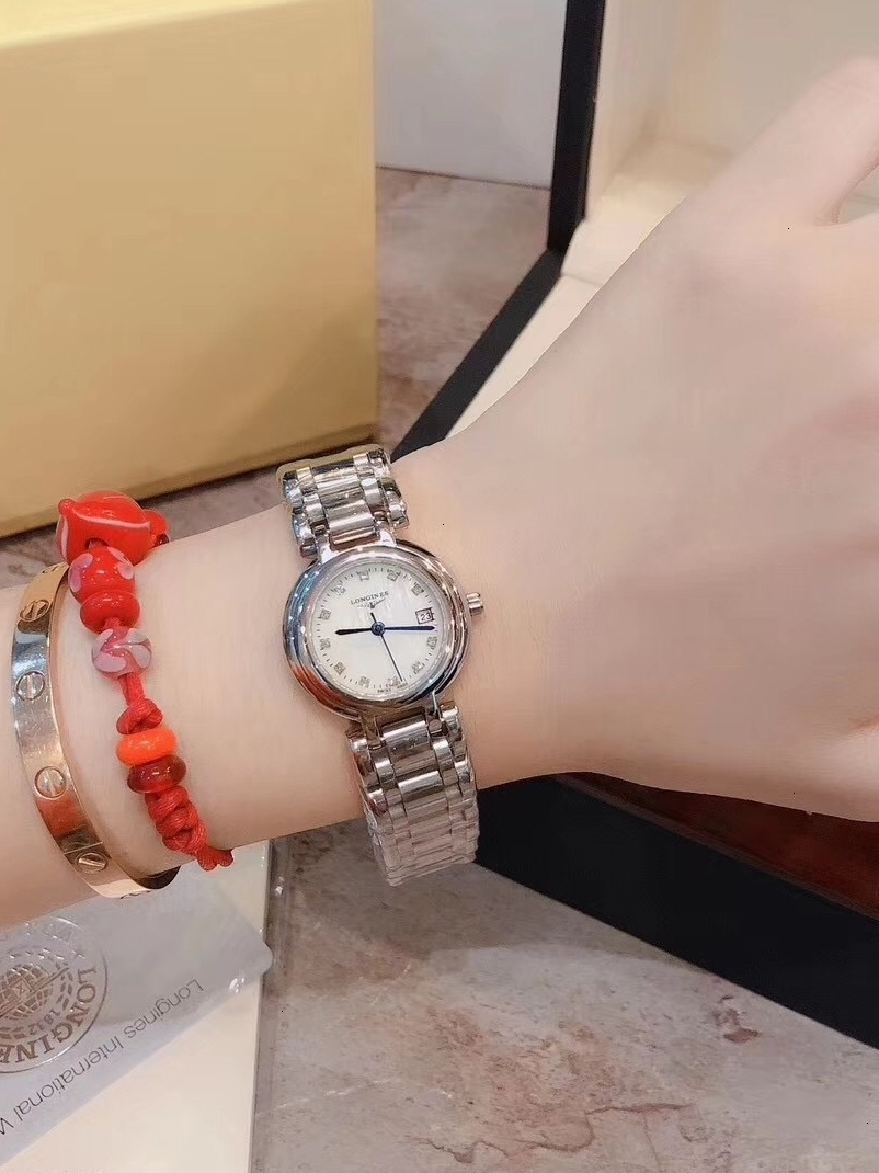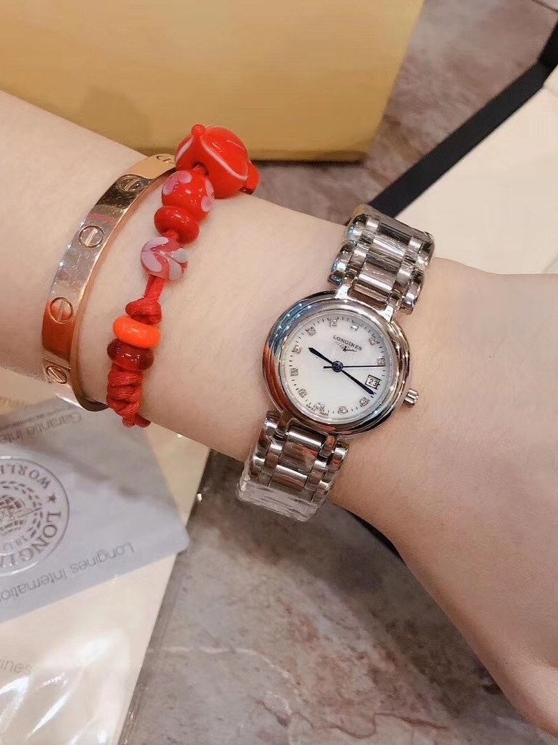 浪琴心月石英全钻,带起来感觉还是很精致的,虽然没有秒针,但是右边多一颗真钻代替了日期框