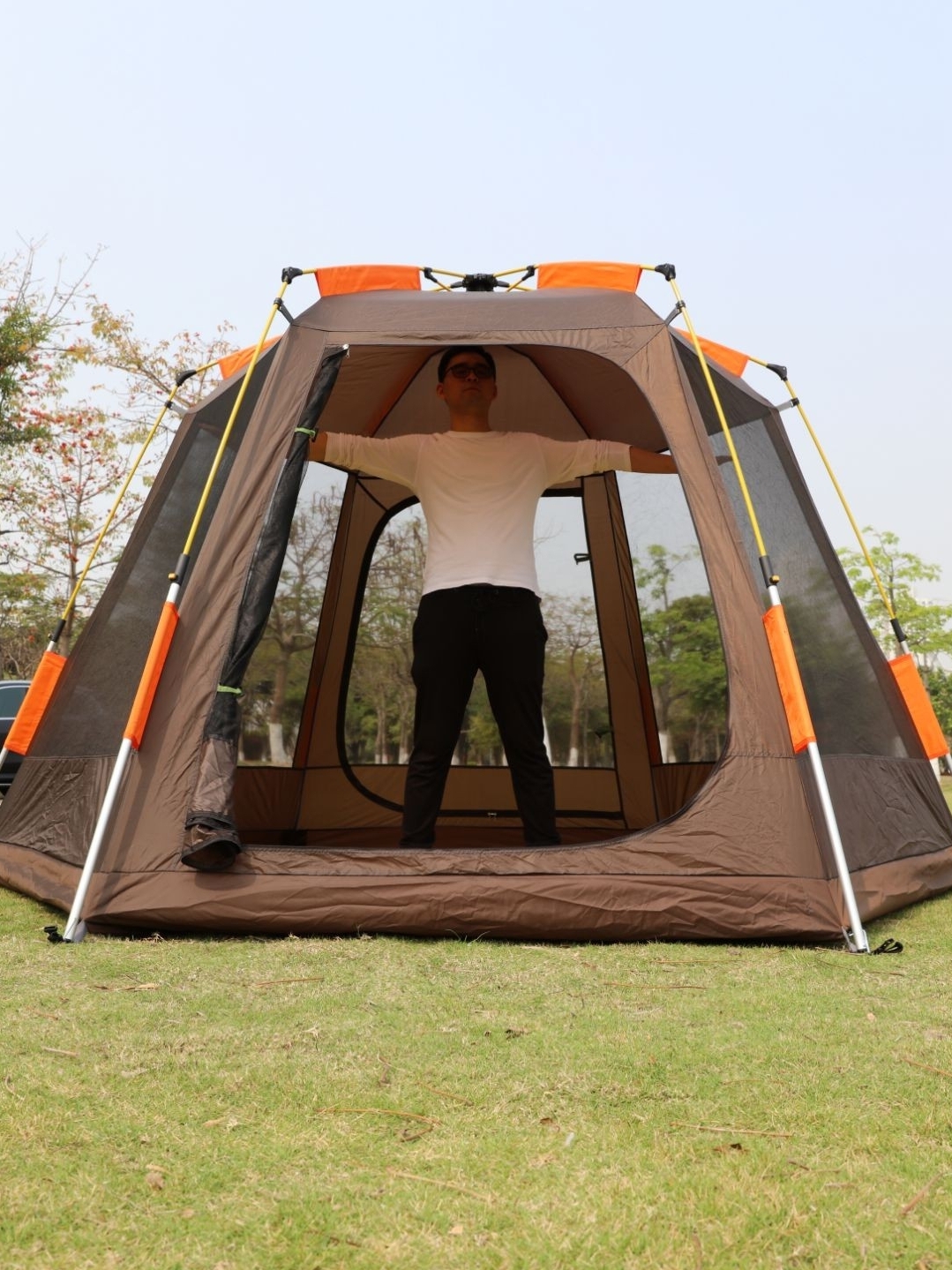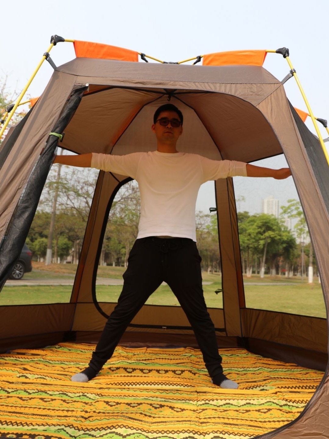 广杰野外露营大帐篷豪华版两室一厅,独立双卧室加客厅的双重享受,移动公寓造型,防昆虫结实结构,双层防雨和压胶防漏水结构,前后大门通风透气。