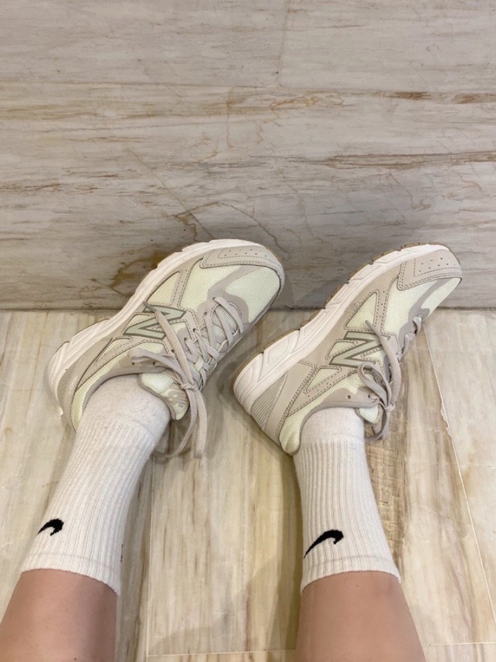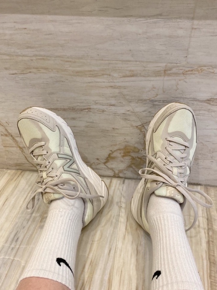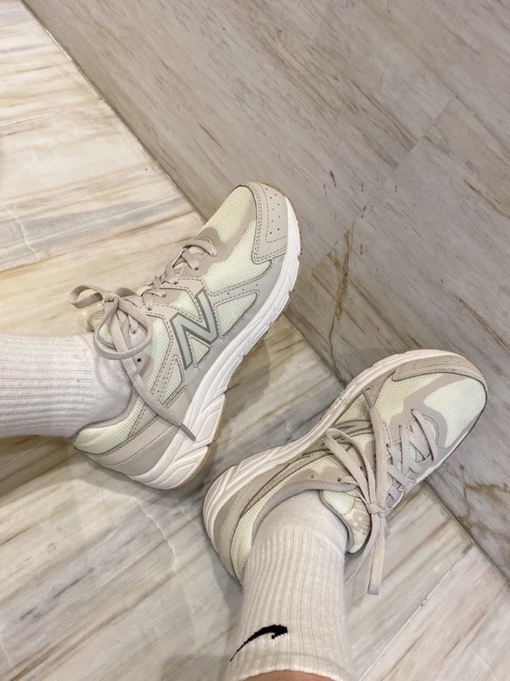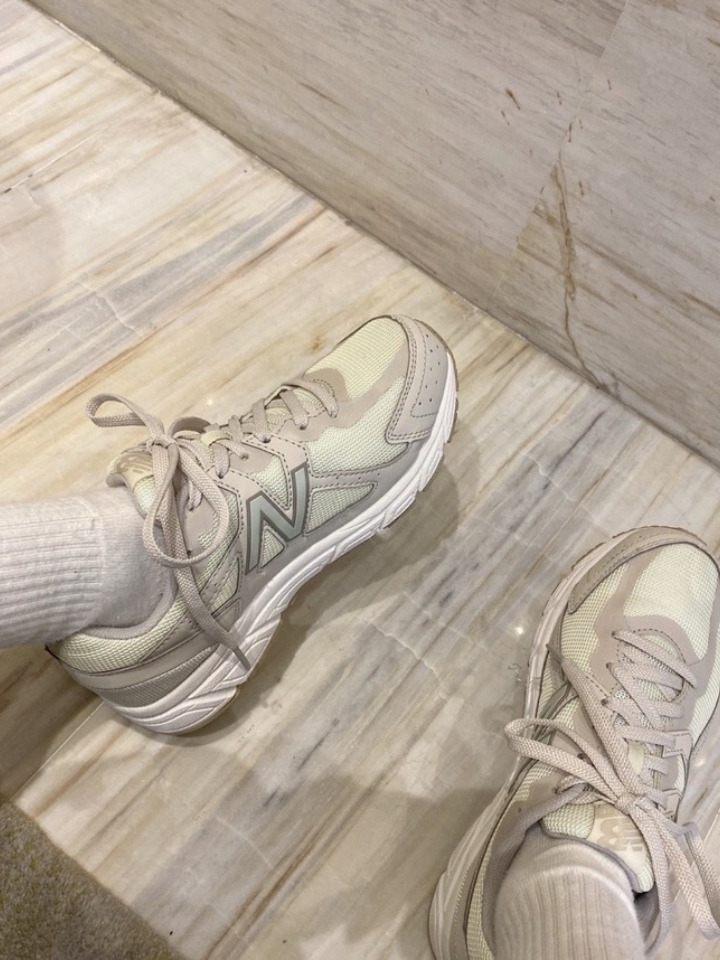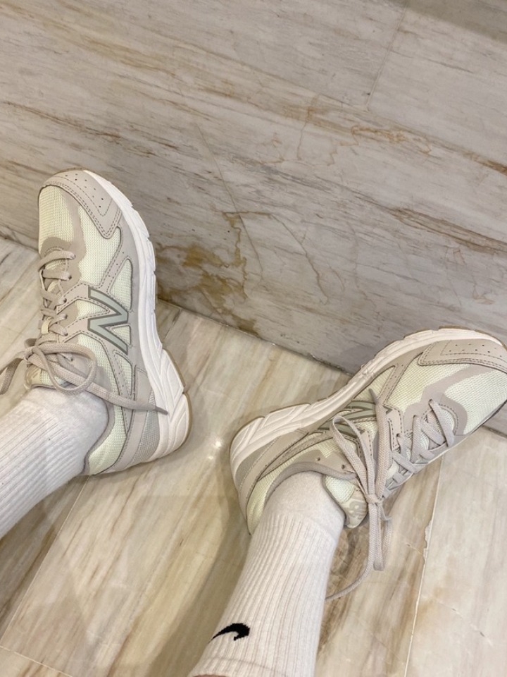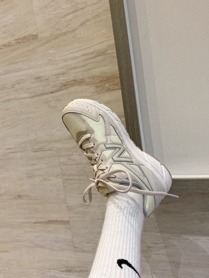 但是这鞋子是不耐脏滴,但看在它颜值的份上原谅它了!颜色是奶白的非常温柔,细节图我都po在后面啦,鞋子比一般的运动鞋多了一个鞋带扣,鞋子到手我检查缝合处也是很紧密的,没有脱胶现象,反正可以说是非常爱了!上脚巨好康!不允许小姐妹的鞋柜没有它!