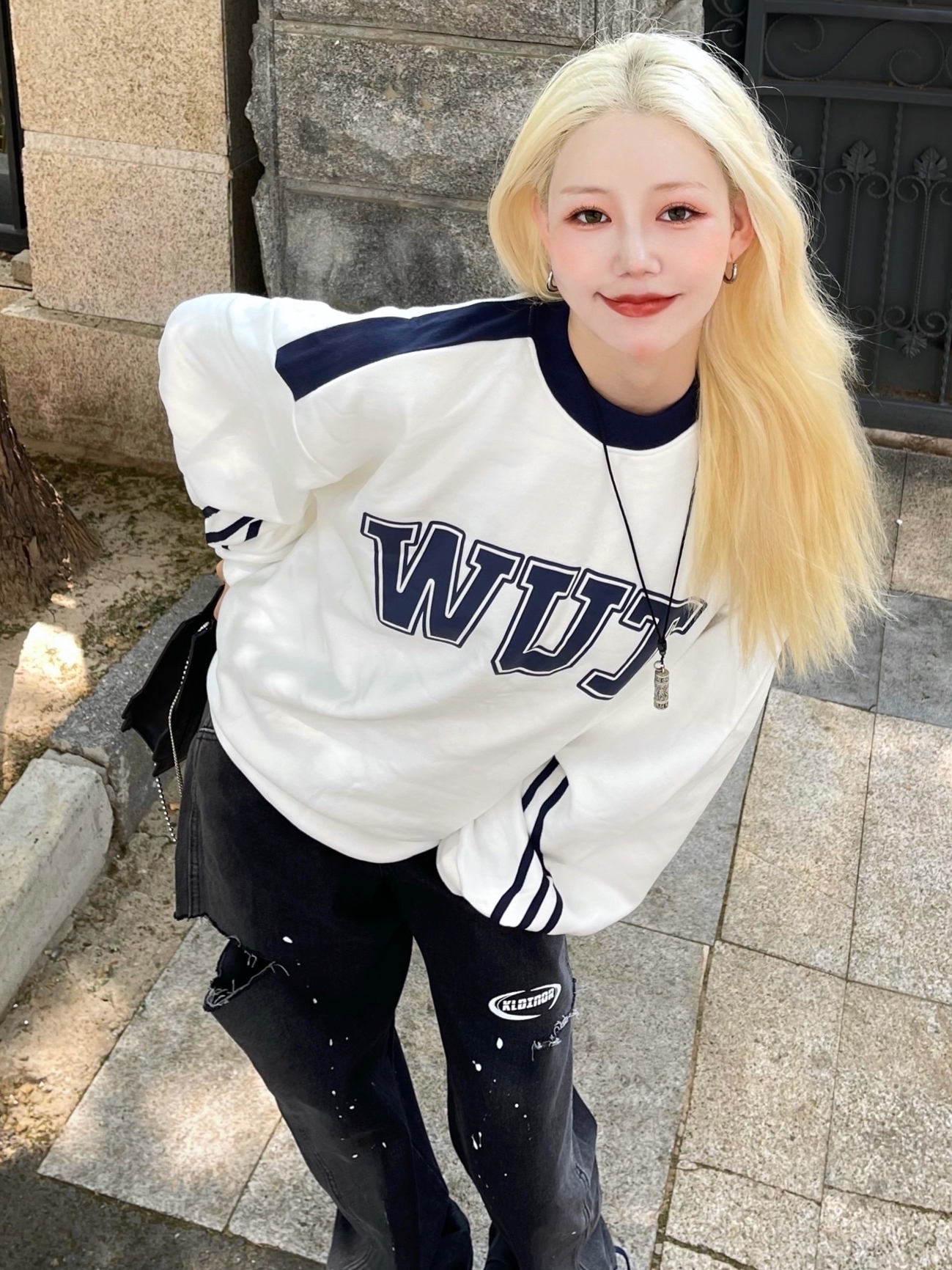 圆领的设计,精致又美好,充分将女性温婉的气质展现;宽松的版型,用大轮廓衬托出女性的纤细娇柔,达到巧妙的平衡感;新潮的字母元素,凸显出自然随性的生命力,洋溢个性的气息。